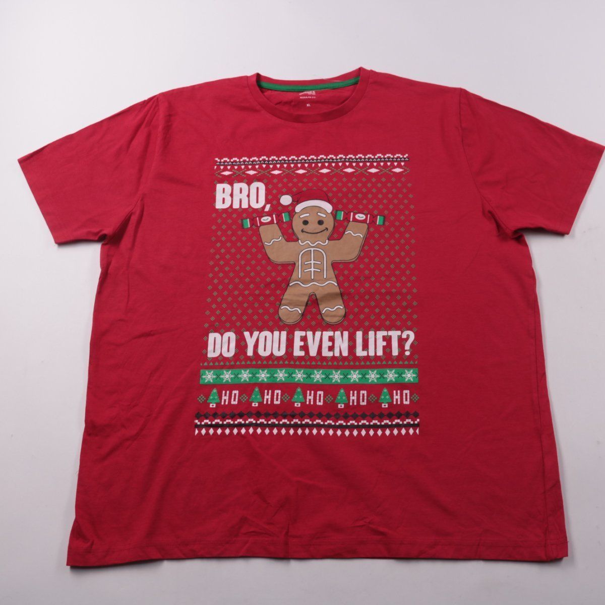 Мужская футболка Dunnes Stores Regular Fit красного цвета с новогодним принтом. Подойдёт для повседневной носки и тематических мероприятий/праздников. Натуральный хлопок хорошо дышит и комфортен в течение дня.