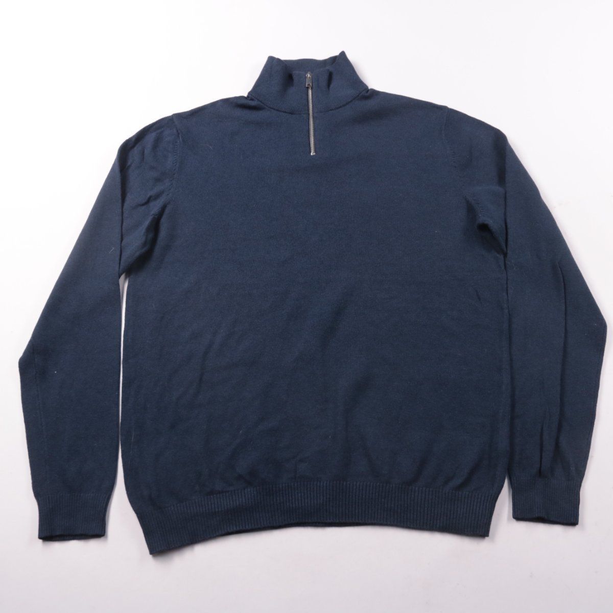 Мужской джемпер PRODUKT тёмно-синего цвета с воротником-стойкой и короткой молнией. Подойдёт для повседневной носки и как слой под куртку в прохладную погоду. Смесовый состав с хлопком хорошо дышит и удобен в уходе.