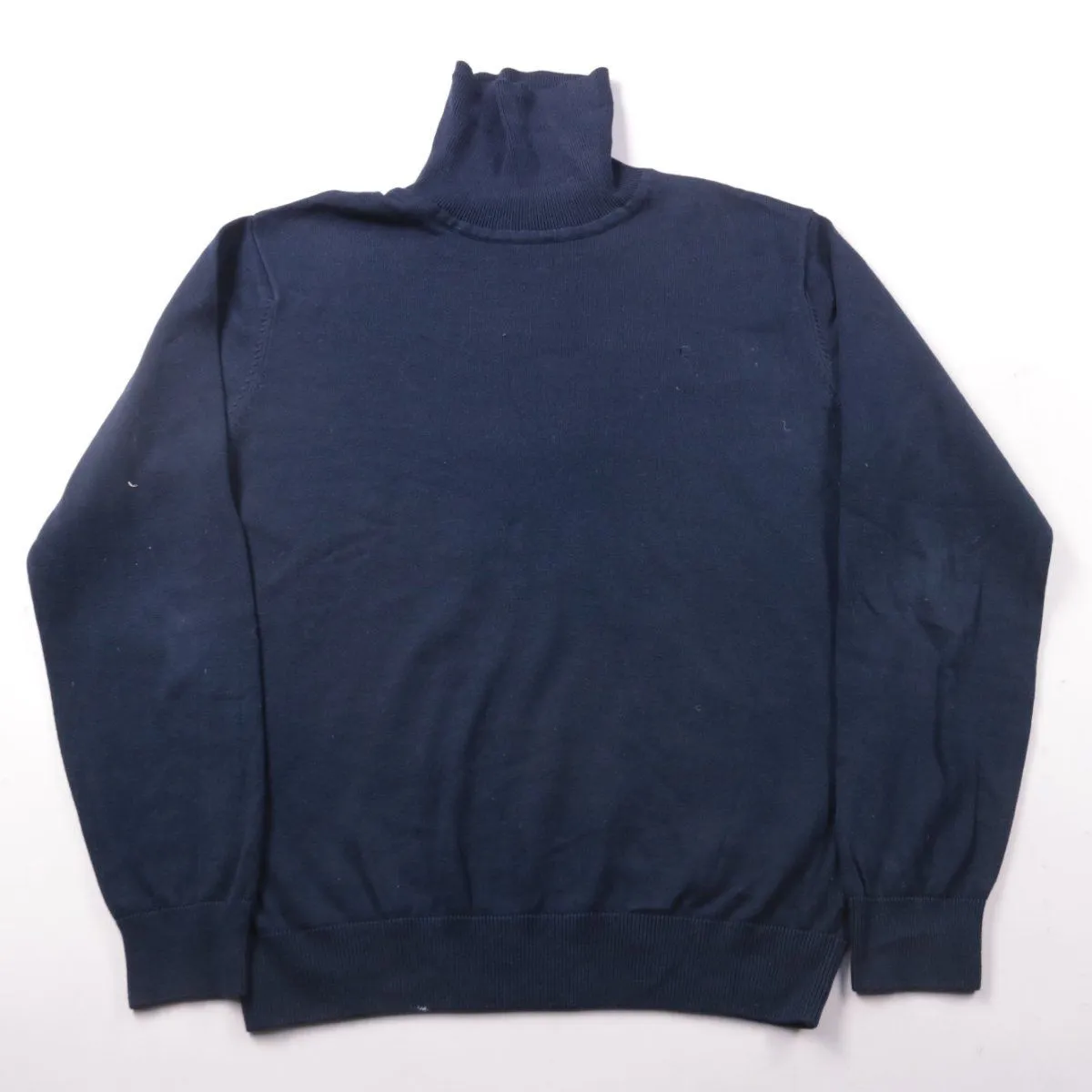 Мужской свитер с высоким воротом, бренд по фото не указан. Подойдёт для повседневной носки в прохладную погоду и для многослойных образов. Состав 100% хлопок — приятный к телу и хорошо дышит.