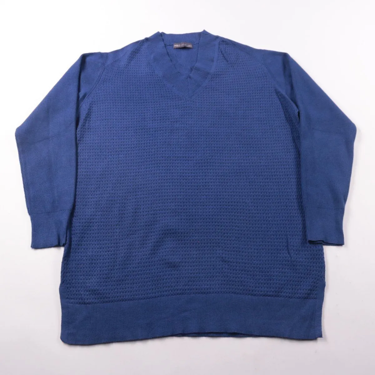 Мужской джемпер M&S (Marks & Spencer) тёмно-синего цвета с V-образным вырезом и фактурной вязкой спереди. Подойдёт для повседневной носки и офиса, удобно носить как самостоятельный слой или под куртку. Смесовая пряжа с вискозой мягкая и практична в уходе.