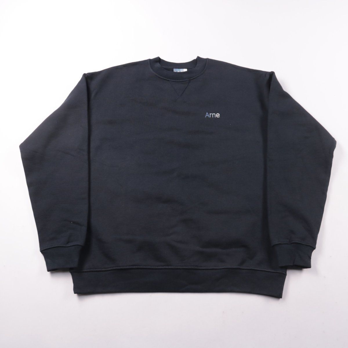 Мужской свитшот ARNE чёрного цвета с небольшим логотипом на груди и круглым вырезом. Подойдёт для повседневной носки и в качестве базового слоя в прохладную погоду. Материал из 100% хлопка, плотный и комфортный в носке.