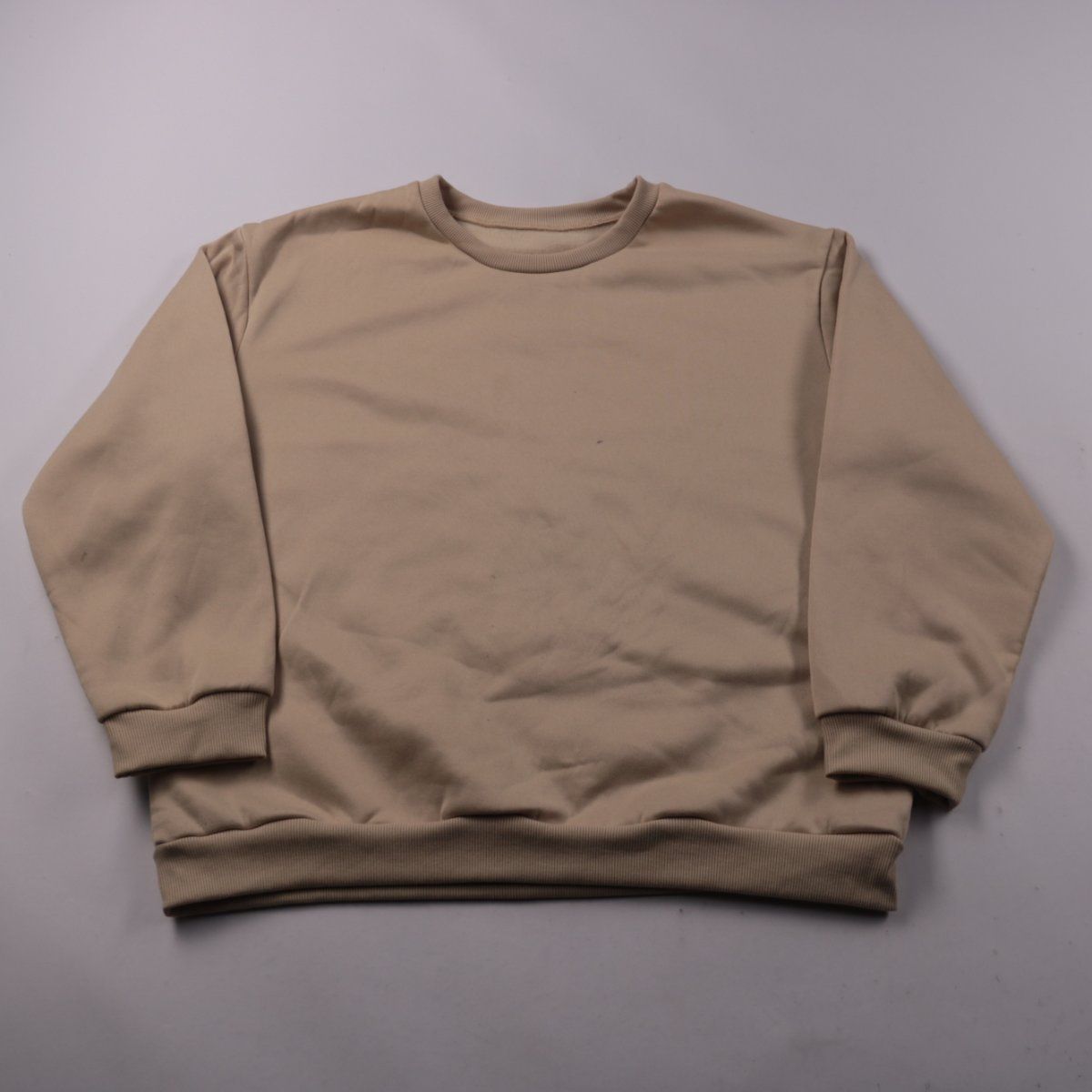 Свитшот без указанного бренда бежевого цвета, с круглым вырезом и принтом на груди. Подойдёт для повседневной носки и как второй слой в прохладную погоду. Полиэстер прост в уходе и быстро сохнет.