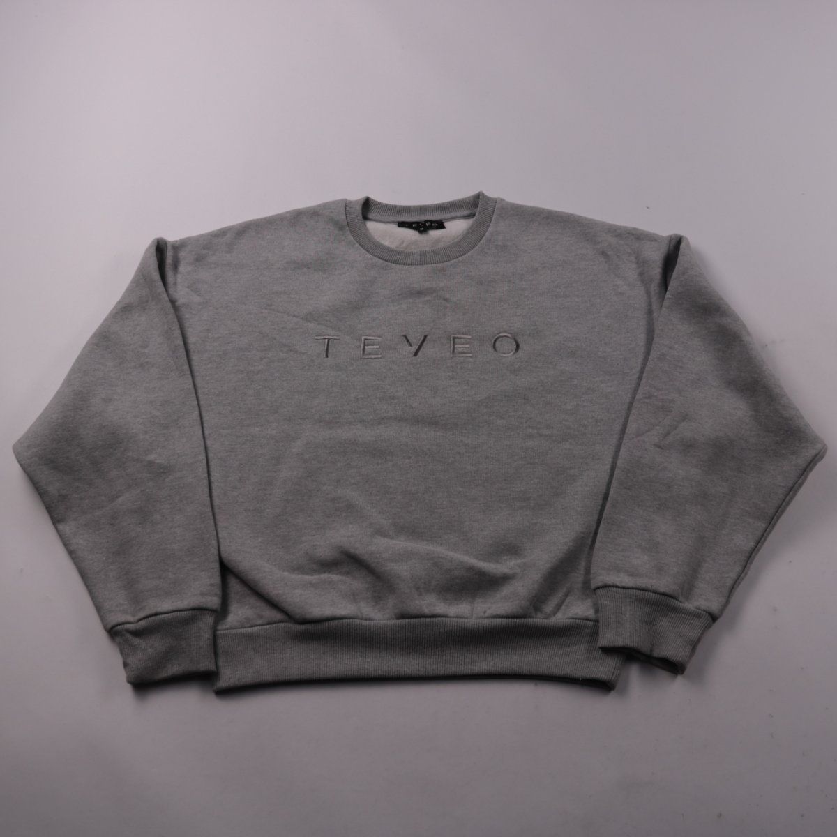 Мужской свитшот TEVEO серого меланжа с вышитым логотипом на груди и круглым вырезом. Подойдёт для повседневной носки и прогулок в прохладную погоду благодаря мягкой утеплённой изнанке. Практичный плюс — плотные манжеты и низ на резинке хорошо держат форму.