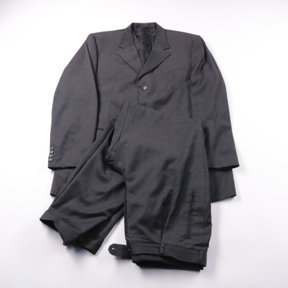 Мужской костюм Carl Gross тёмно-серого (графитового) цвета: классический пиджак на пуговицах и брюки. Подойдёт для офиса, деловых встреч и торжественных мероприятий. Натуральная шерсть хорошо держит форму, подкладка из вискозы комфортна в носке.