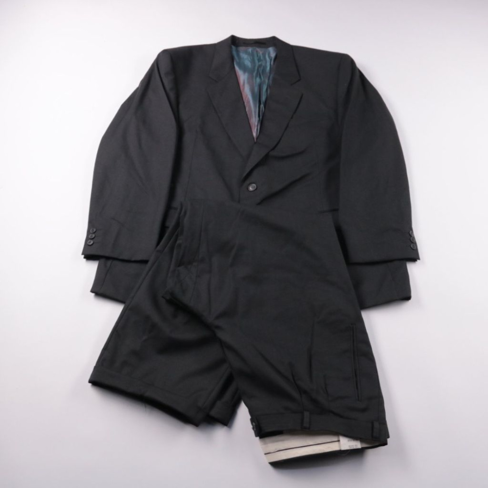 Мужской классический костюм Manston чёрного цвета: пиджак на двух пуговицах и брюки со стрелками. Подойдёт для офиса, деловых встреч и торжественных мероприятий. Практичный тёмный цвет легко сочетать с рубашками и обувью и он менее маркий в носке.
