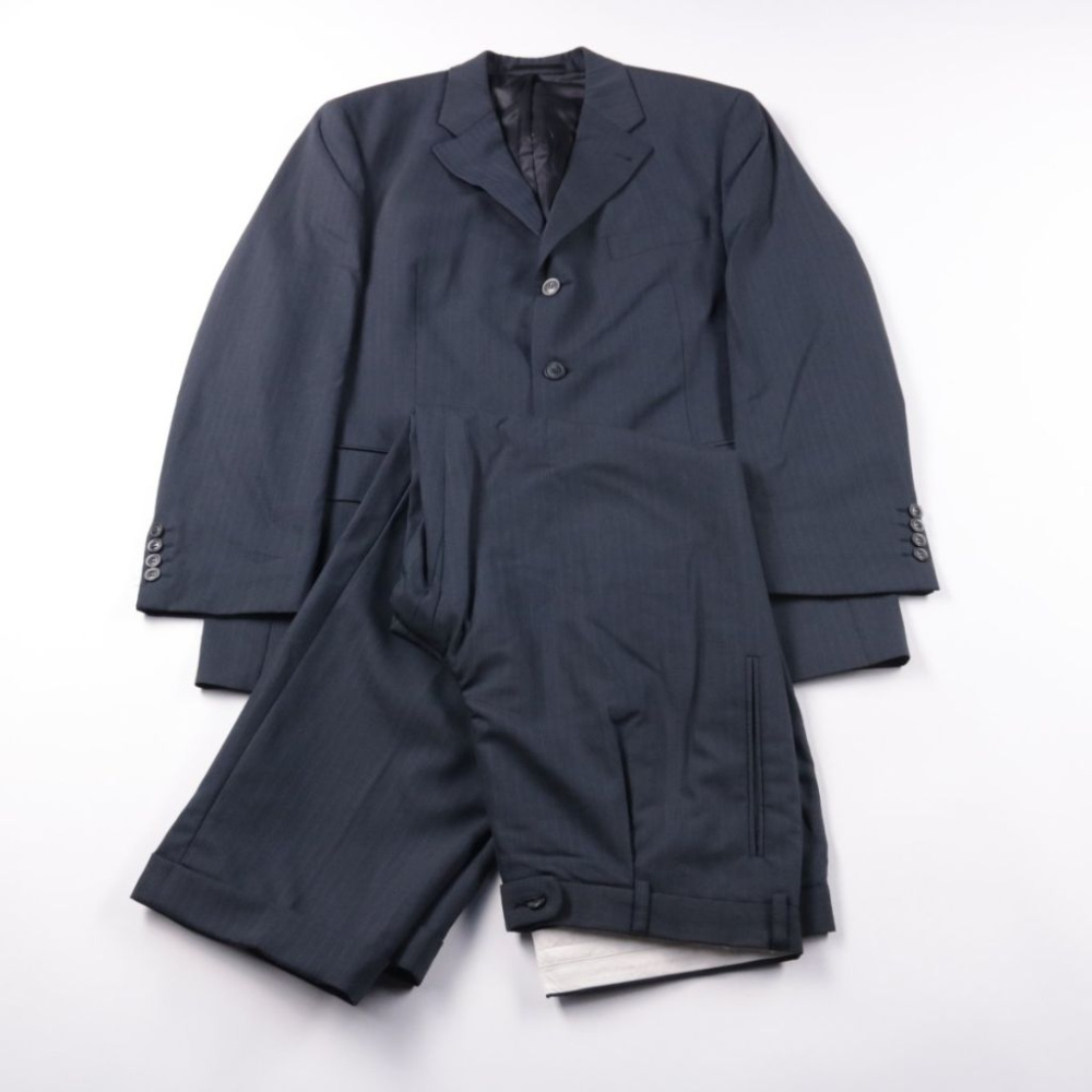 Мужской костюм Plenge тёмно-синего цвета с лёгкой фактурой в тонкую полоску: пиджак на пуговицах и классические брюки. Подойдёт для офиса, деловых встреч и торжественных мероприятий. Практичный тёмный оттенок немаркий и легко сочетается с рубашками и о...