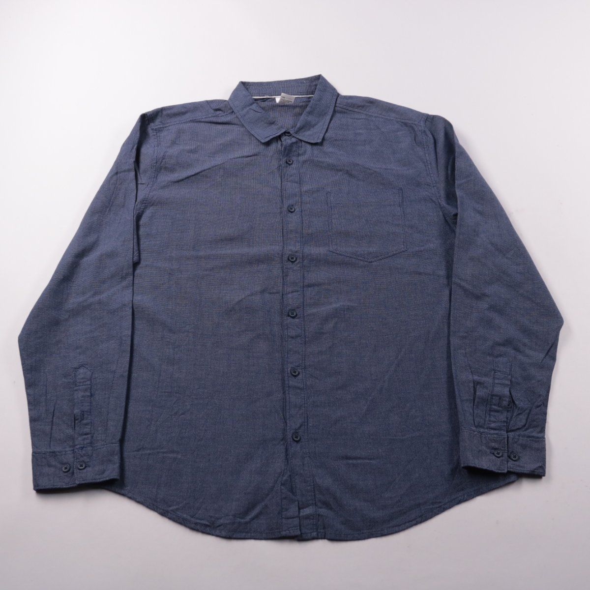 Мужская рубашка Kmart из хлопка, тёмно-синего цвета, с длинным рукавом и нагрудным карманом. Подойдёт для повседневной носки и офиса в сочетании с джинсами или брюками. Хлопковая ткань хорошо дышит и комфортна в течение дня.
