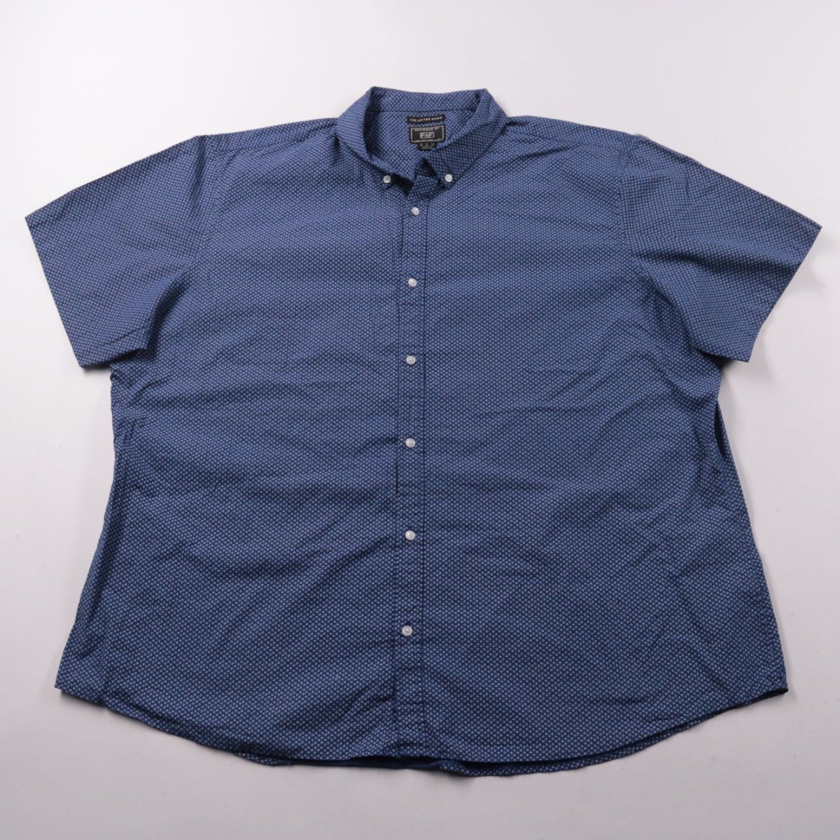 Мужская рубашка F&F с коротким рукавом и воротником button-down, синего цвета с мелким светлым принтом. Подойдёт для повседневных образов, офиса без строгого дресс-кода и летних прогулок. Натуральный хлопок хорошо дышит и комфортен в жару.