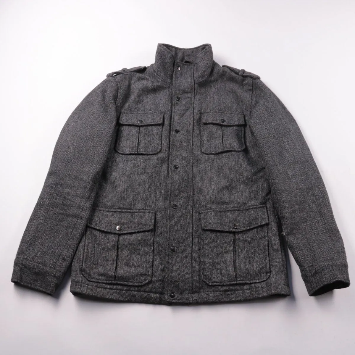 Мужская демисезонная куртка Smog серого цвета с высоким воротником-стойкой и застёжкой на кнопках. Подойдёт для города и прохладной погоды весной/осенью. Практичный плюс — четыре накладных кармана спереди для мелочей.