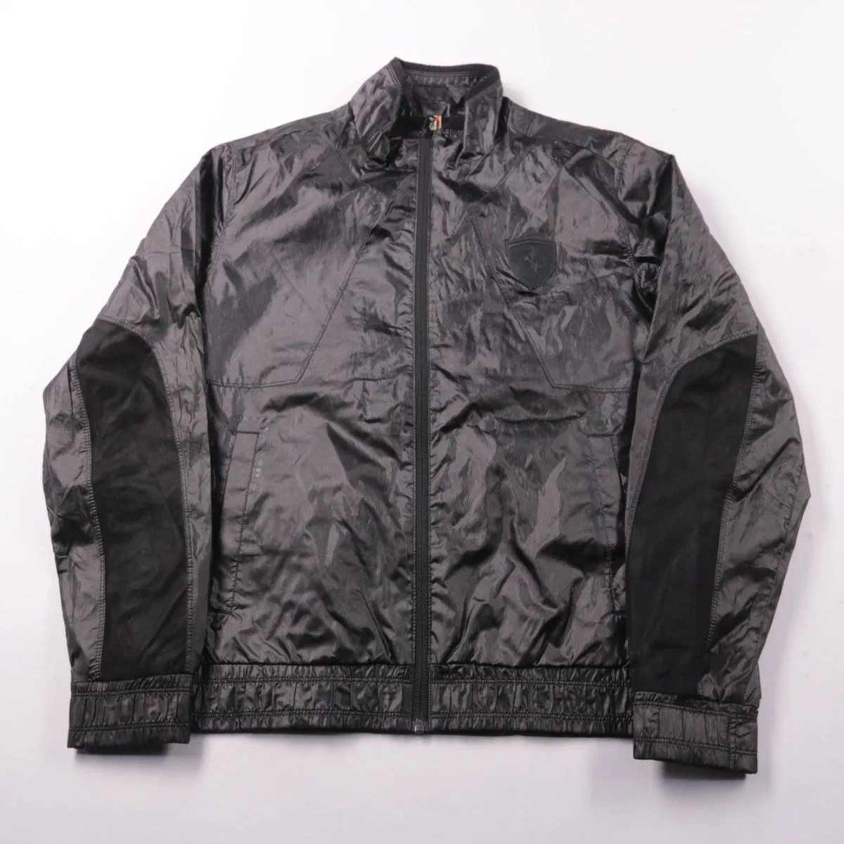 Мужская лёгкая куртка-ветровка Puma с нашивкой Ferrari и воротником-стойкой. Подойдёт для прогулок и поездок в прохладную погоду весной и осенью. Лёгкий полиэстер быстро сохнет и не занимает много места в сумке.