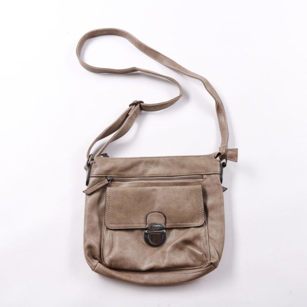 Небольшая сумка через плечо в бежево-коричневом оттенке с клапаном на поворотной застёжке и дополнительными карманами на молнии. Подойдёт для повседневных прогулок и поездок, когда нужны самые важные вещи под рукой. Длинный ремень позволяет носить её к...