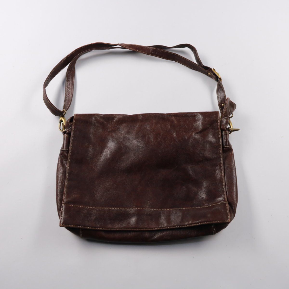 Коричневая сумка через плечо из кожи с клапаном и регулируемым ремнём. Подойдёт для повседневных дел и поездок, внутрь помещаются документы и мелочи. Практичный плюс — вместительное основное отделение и удобный доступ благодаря широкому клапану.