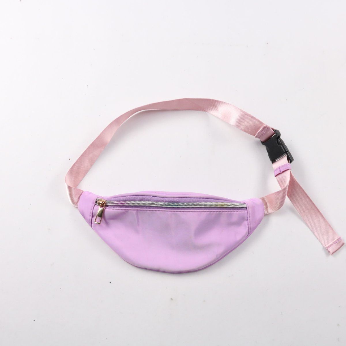 Поясная сумка Glitter в лавандовом цвете с розовым регулируемым ремнём и застёжкой на молнию. Подойдёт для прогулок и поездок, чтобы держать телефон, ключи и мелочи под рукой. Практична тем, что освобождает руки и удобно фиксируется на талии или через плечо.
