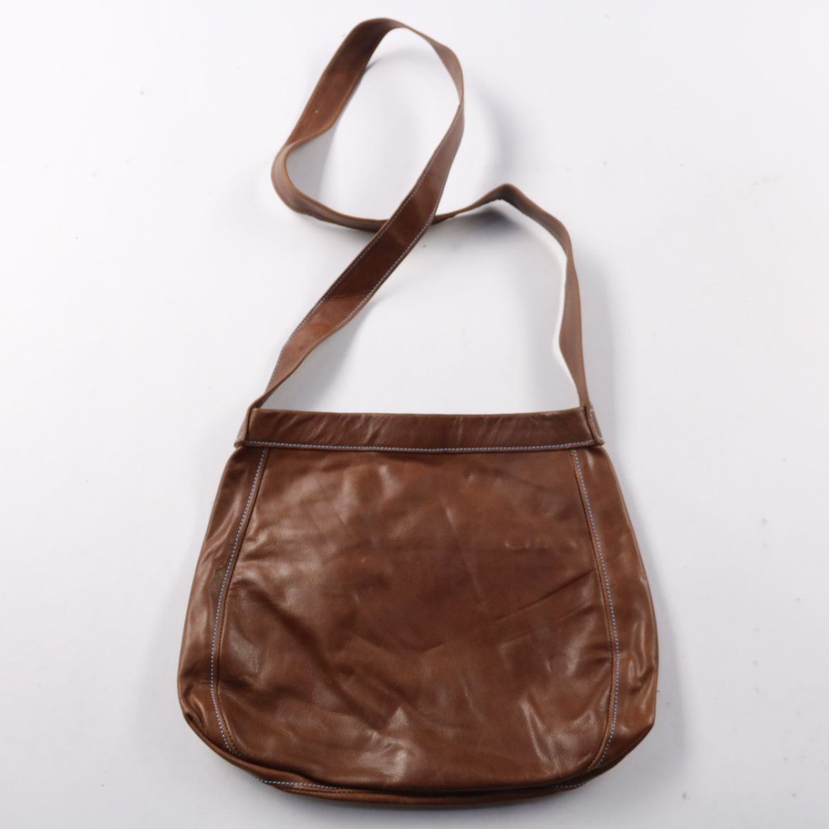 Кожаная сумка через плечо из мягкой коричневой кожи с длинным ремнём и декоративной контрастной строчкой. Подойдёт для повседневных прогулок и города, поместятся необходимые вещи и небольшие документы. Внутри кожаная/замшевая отделка, материал плотный и износостойкий.