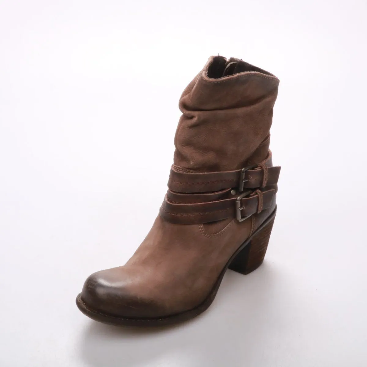 Женские кожаные ботильоны Altacalida коричневого цвета с ремешками и устойчивым каблуком. Подойдут для повседневных образов в демисезон с джинсами или платьями. Удобно застёгиваются на боковую молнию, а рельефная подошва даёт хорошее сцепление.
