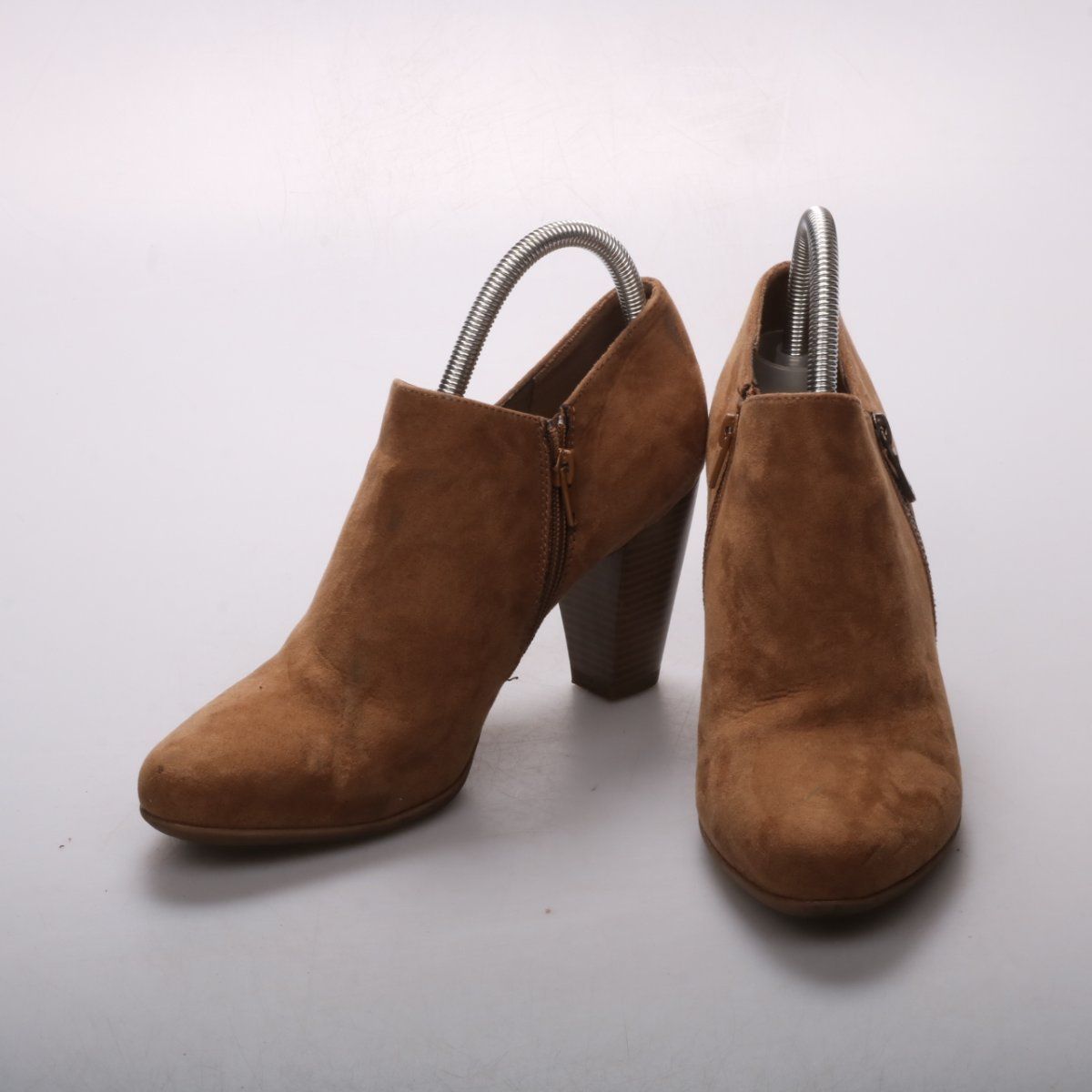 Женские ботильоны из натуральной замши коричневого цвета, с боковой молнией и устойчивым каблуком. Подойдут для повседневной носки в демисезон и прохладные дни, легко сочетаются с джинсами и платьями. Практичное преимущество — удобная посадка за счёт молнии и стабильный каблук для долгой ходьбы.