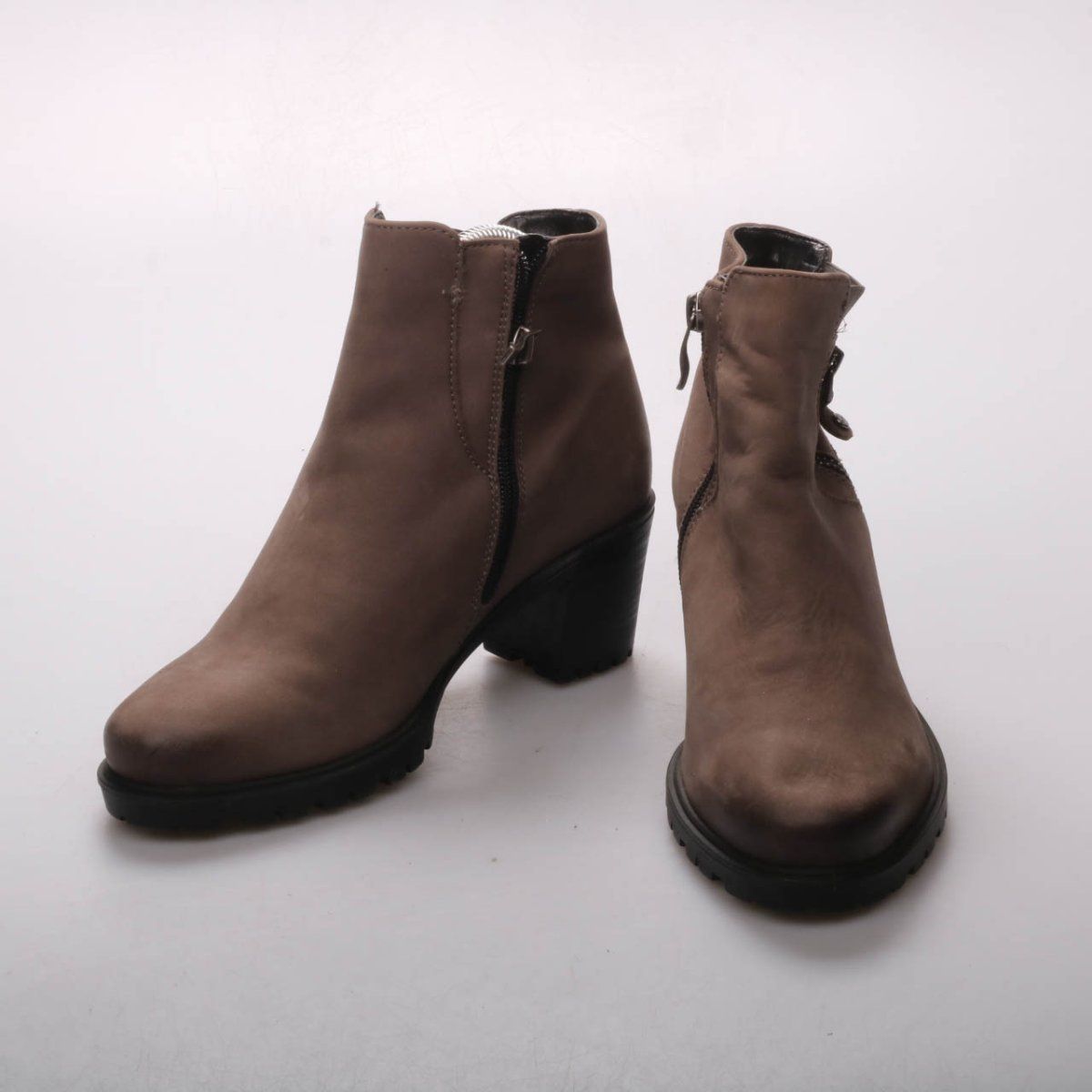 Женские ботильоны Ara из матовой кожи (нубук) коричневого цвета, с боковой молнией и устойчивым каблуком. Подойдут для повседневной носки осенью и весной, хорошо сочетаются с джинсами и платьями. Практичный плюс — рельефная подошва с протектором для более уверенного шага.