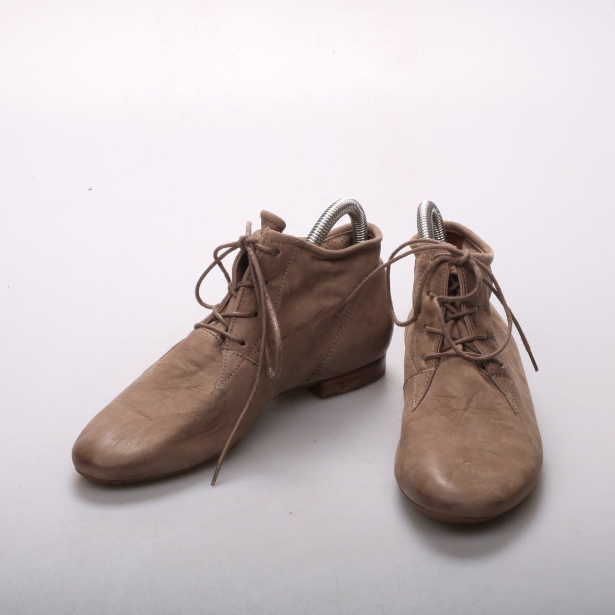 Женские ботильоны Paul Green на шнуровке из натуральной замши в бежево-тауповом оттенке. Подойдут для повседневных образов в демисезон, хорошо сочетаются с джинсами и юбками. Невысокий устойчивый каблук и рифлёная подошва делают пару более практичной для города.
