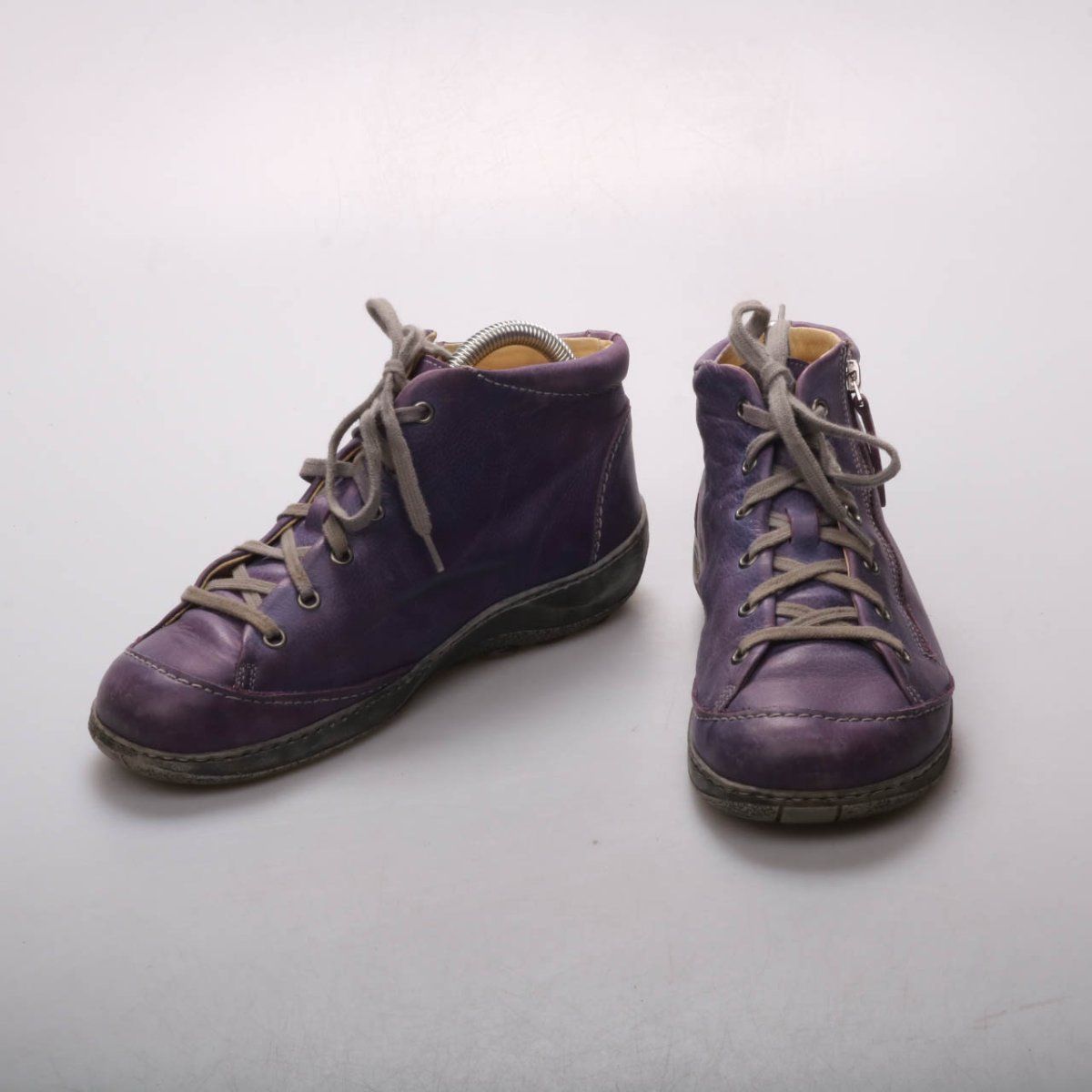 Женские кожаные ботинки Deerberg фиолетового цвета на шнуровке, с боковой молнией. Подойдут для повседневной носки в межсезонье и на прохладную погоду. Молния сбоку помогает быстрее надевать и снимать обувь.