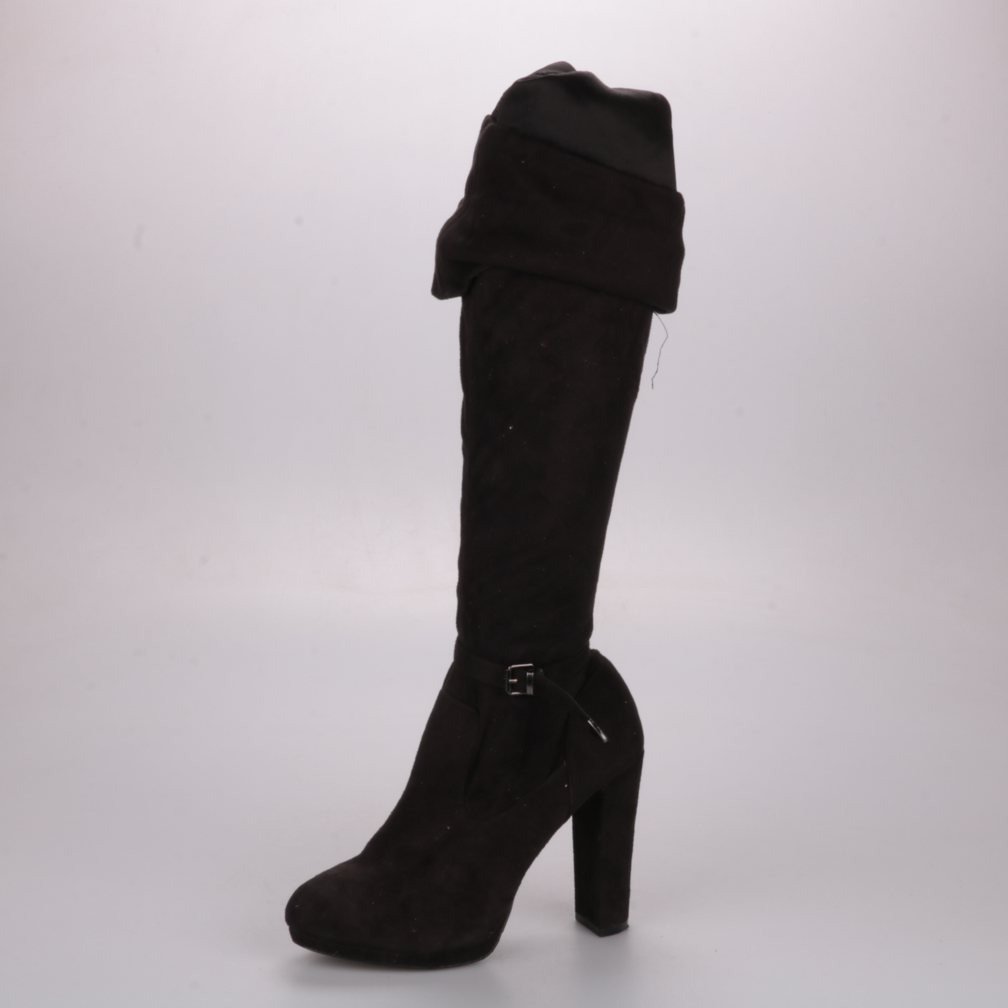 Женские сапоги-ботфорты на устойчивом высоком каблуке, чёрные, с боковой молнией и декоративной пряжкой. Подойдут для вечерних образов и на каждый день в прохладную погоду. Устойчивый каблук и удобная застёжка-молния помогают быстро надевать и комфортн...