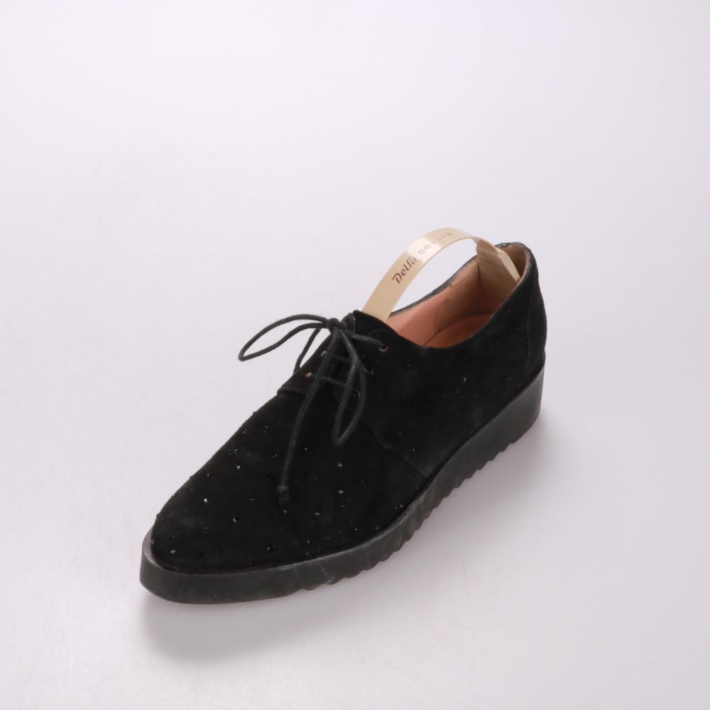 Туфли Brenda Zaro из чёрной замши на шнуровке с лёгкой платформой и рельефной подошвой. Подойдут для повседневной носки и офиса в прохладное время года. Устойчивая подошва даёт хорошее сцепление и комфорт при ходьбе.