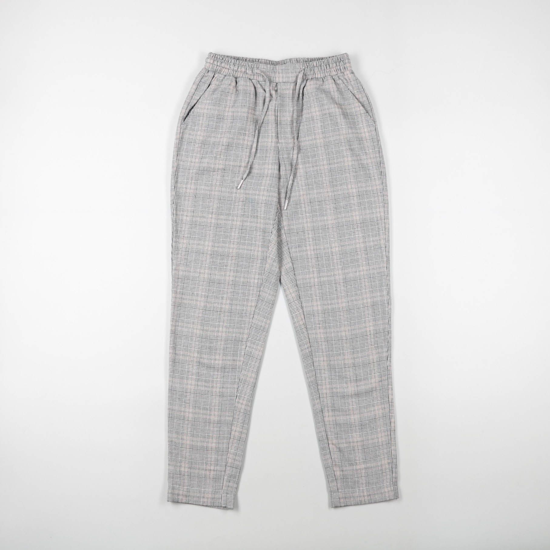 Женские брюки в серую клетку с эластичным поясом и завязками, комфортная посадка и слегка зауженный крой. Подойдут для повседневных образов, офиса в стиле casual и прогулок. Практичны тем, что пояс на резинке легко подстраивается по талии и не сковывае...