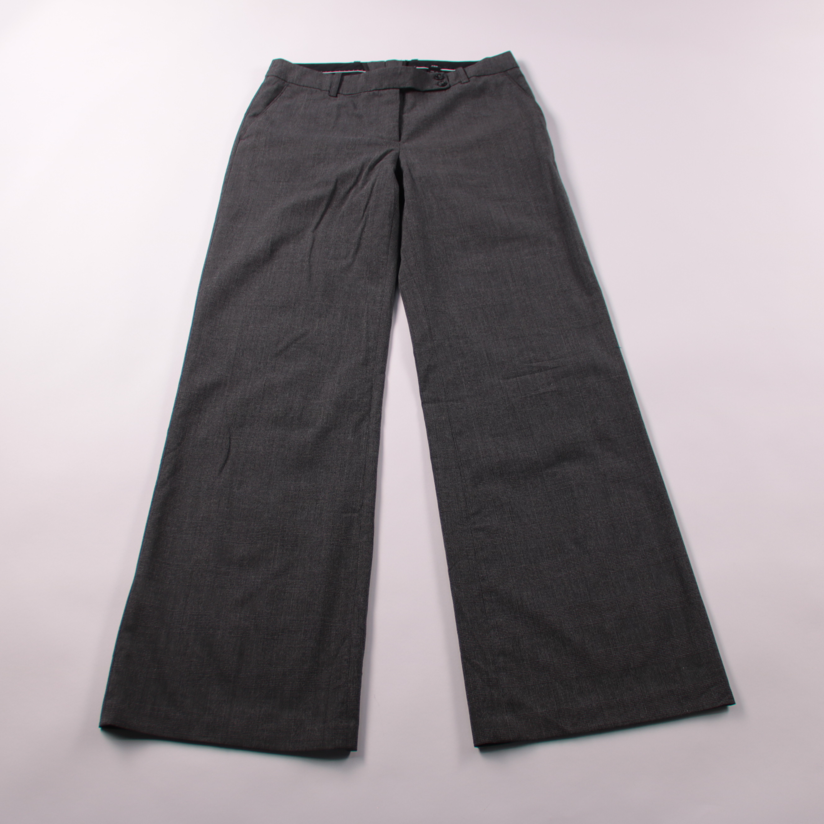 Женские классические брюки H&M прямого кроя в тёмно-сером цвете. Подойдут для офиса и повседневных образов с рубашкой или свитером. Ткань с добавлением эластана немного тянется и комфортно садится по фигуре.