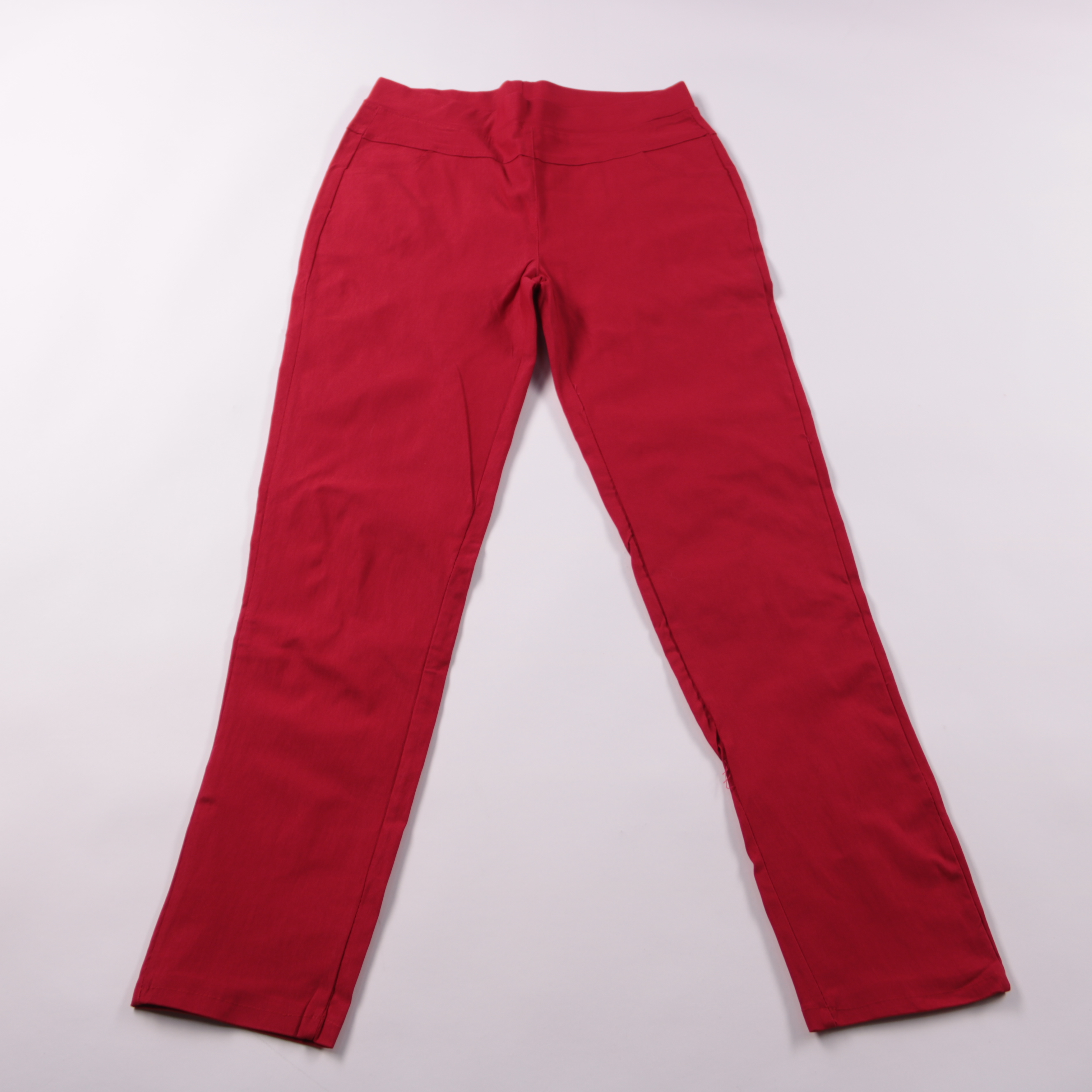 Женские красные брюки прямого кроя без видимого бренда. Подойдут для повседневных образов и более строгих комплектов за счёт лаконичного дизайна. Плотная ткань держит форму и удобно сочетается с базовыми вещами.