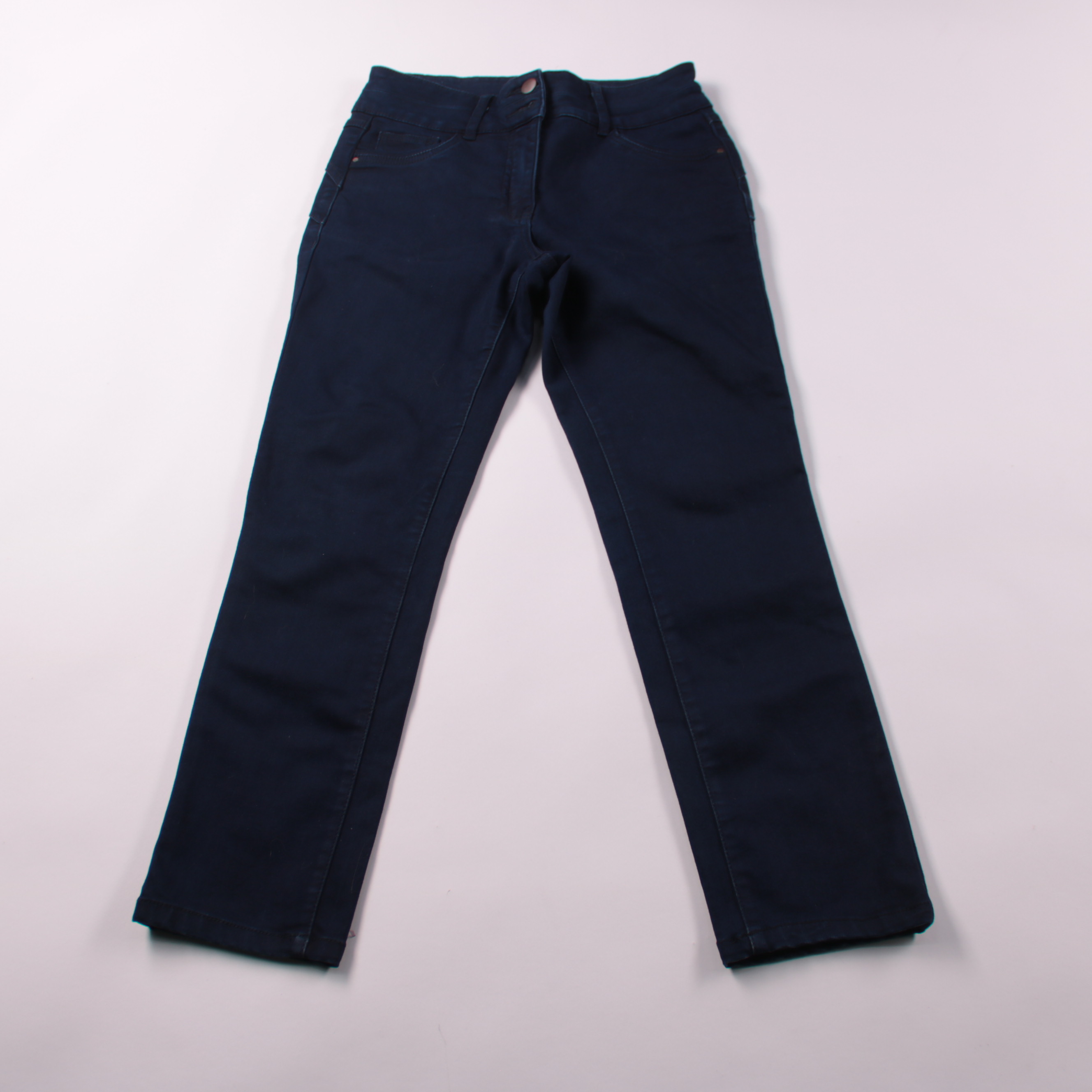 Женские брюки M&Co Petite в тёмно-синем цвете, прямого кроя. Подойдут для повседневных и офисных образов, хорошо сочетаются с рубашками и свитерами. Ткань со стрейчем, поэтому комфортно садятся по фигуре и не сковывают движения.