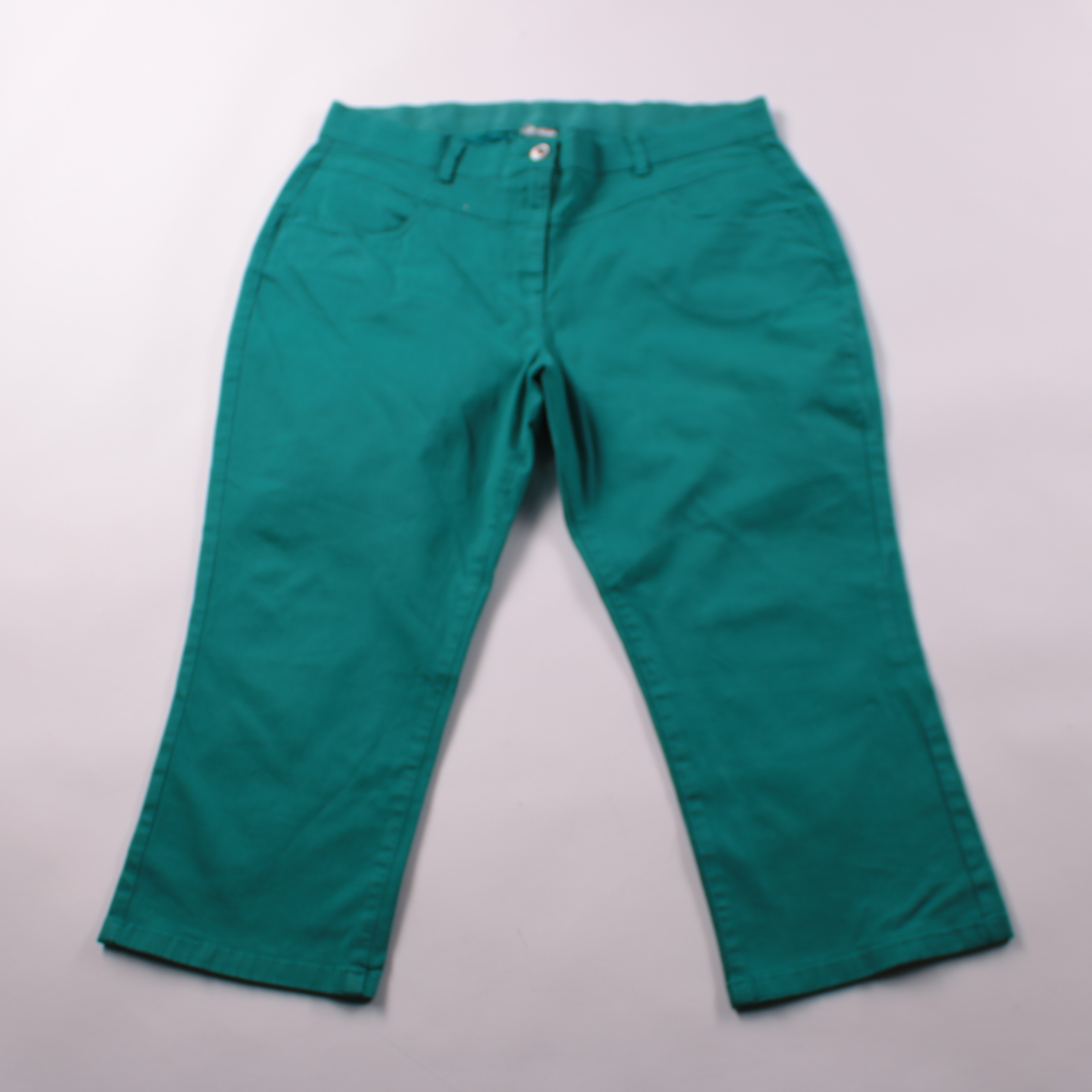 Женские брюки Damart прямого кроя в зелёно-бирюзовом цвете, застёжка на молнию и пуговицу, есть шлёвки под ремень. Подойдут для повседневных образов и офиса в тёплое время или в помещении. Практичная плотная ткань хорошо держит форму и не требует сложн...
