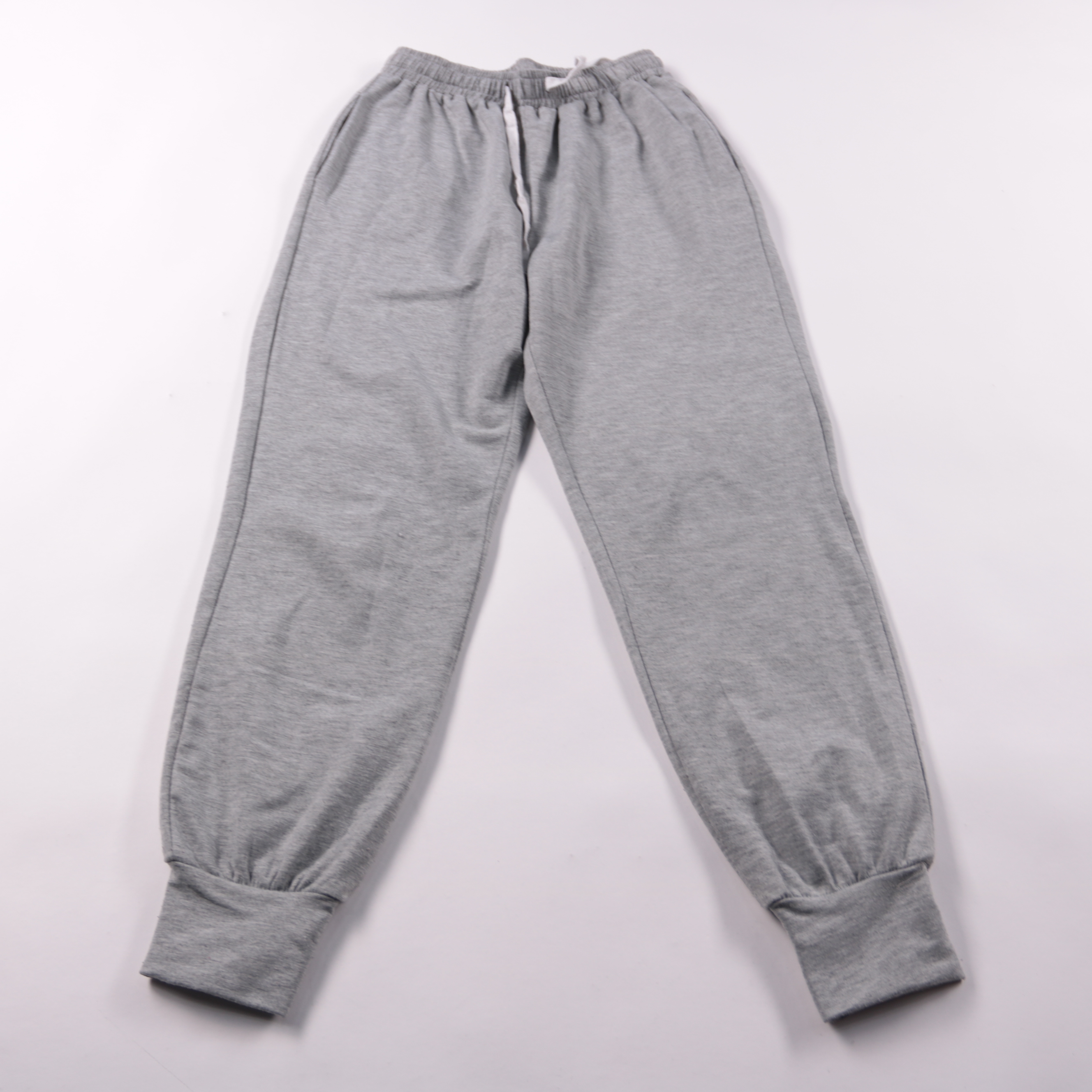 Серые трикотажные брюки-джоггеры на резинке со шнурком и манжетами внизу. Подойдут для дома, прогулок и спорта в прохладную погоду. Мягкий материал и эластичный пояс дают комфортную посадку и свободу движений.