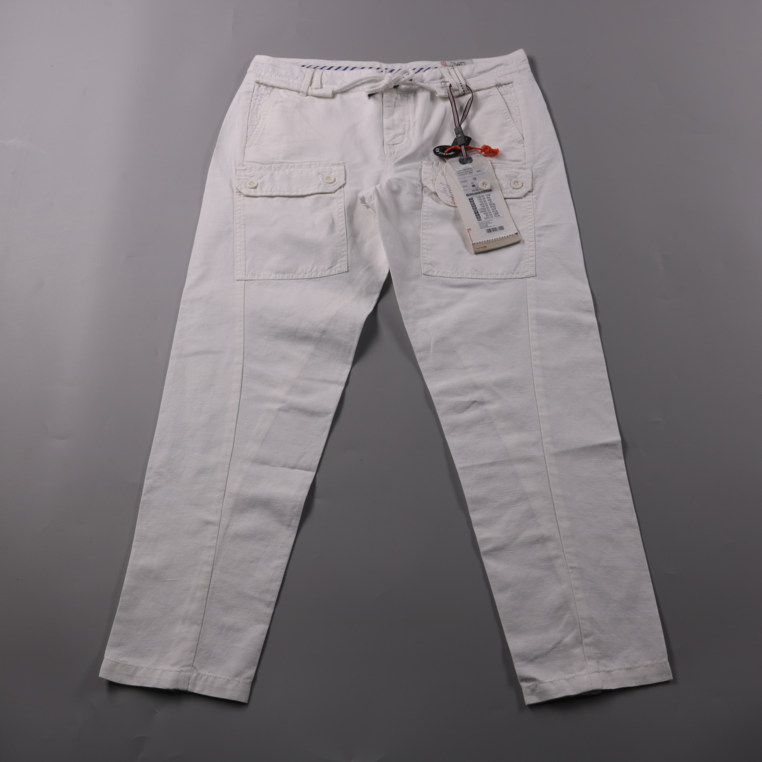Женские брюки Tom Tailor Polo Team белого цвета с накладными карманами и кулиской на поясе. Подойдут для летних прогулок и отпуска, легко сочетаются с футболками и рубашками. Натуральный состав (хлопок с льном) хорошо дышит и комфортен в жару.