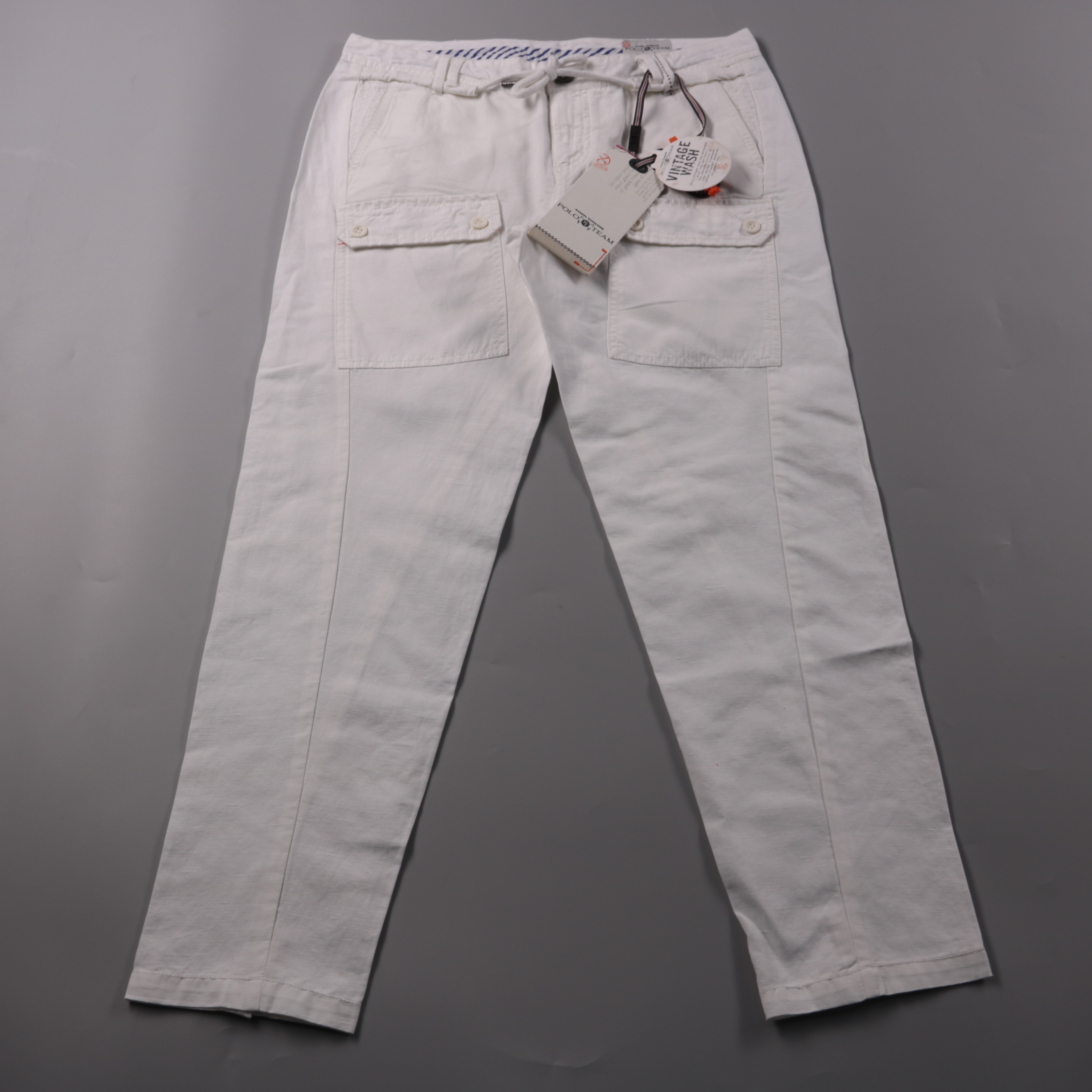 Женские белые брюки Tom Tailor Polo Team с накладными карманами и поясом на шнурке. Подойдут для летних прогулок и отдыха, легко сочетаются с футболками и рубашками. Натуральная хлопково-льняная ткань хорошо пропускает воздух и комфортна в жару.