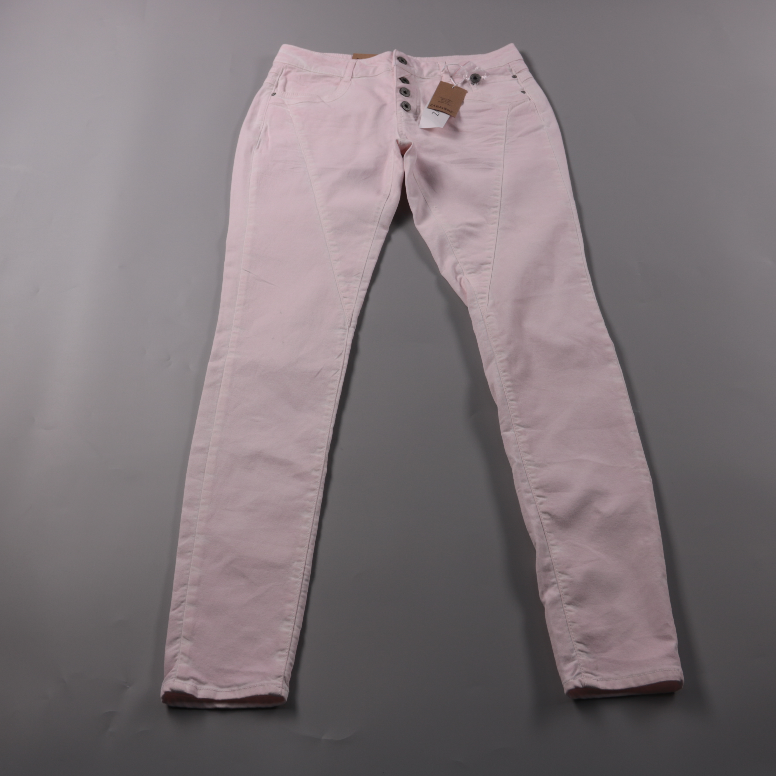 Женские брюки Zabaione в нежно-розовом цвете, модель skinny с посадкой medium waist и застёжкой на пуговицах. Подойдут для повседневных образов в тёплое время и в межсезонье, легко сочетаются с футболками, рубашками и кедами. Эластичная ткань хорошо тя...