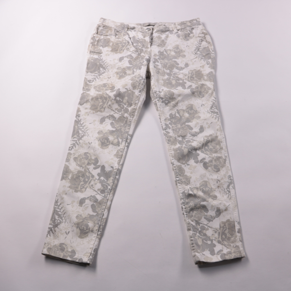 Женские брюки Tu с цветочным принтом в серо-белой гамме. Подойдут для повседневных образов в тёплый сезон и для офиса с однотонным верхом. Хлопковая ткань с добавлением эластана комфортно тянется и не сковывает движения.