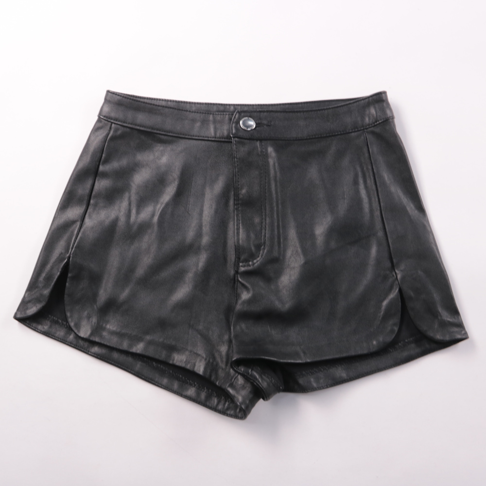 Женские шорты из гладкой эко-кожи чёрного цвета, высокая посадка, застёжка на кнопку. Подойдут для городских летних образов и вечерних выходов с топом или рубашкой. Материал выглядит эффектно и легко протирается от загрязнений.