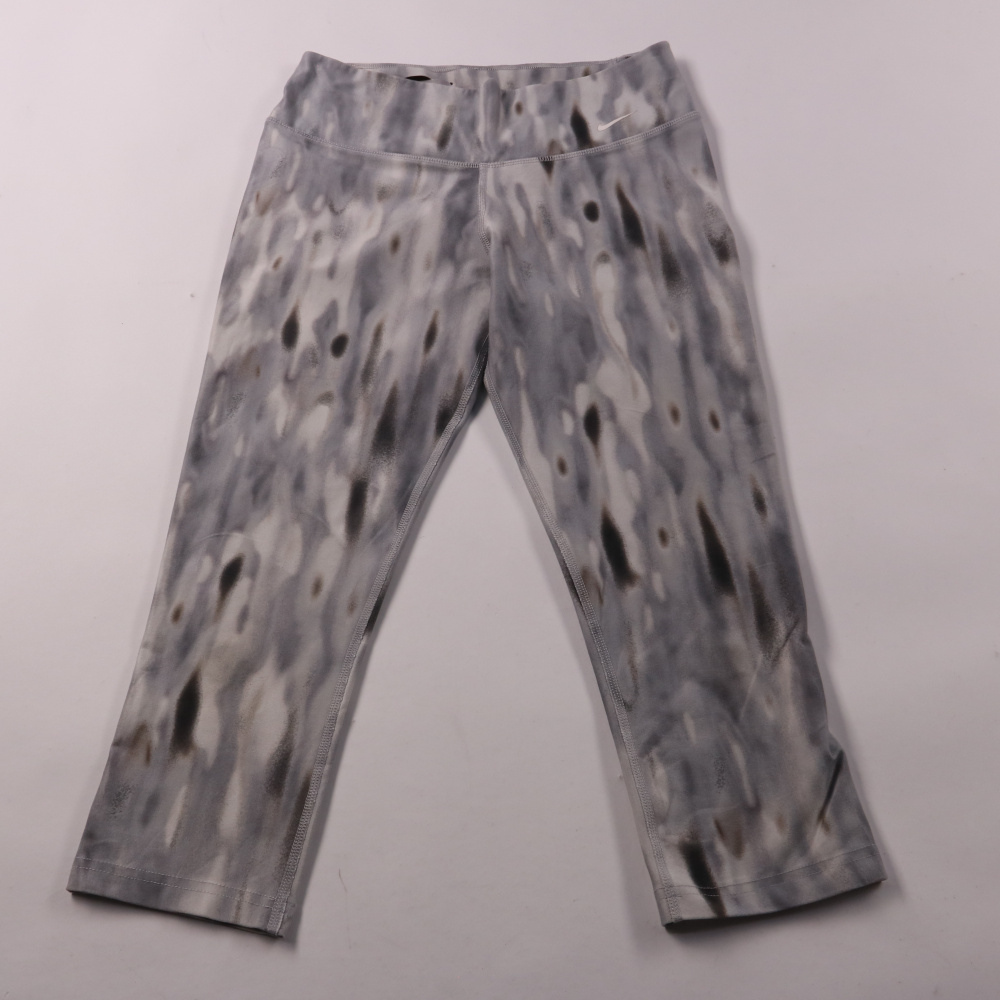 Женские легинсы Nike Dri‑FIT с абстрактным серо-чёрным принтом и эластичным поясом. Подойдут для тренировок, пробежек и активных прогулок благодаря облегающему крою. Материал тянется и быстро сохнет, обеспечивая комфорт в движении.