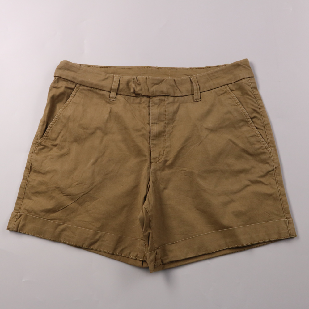 Женские хлопковые шорты в базовом бежево-коричневом оттенке с отворотами и шлёвками под ремень. Подойдут для повседневных летних образов и поездок, легко сочетаются с футболками и рубашками. Практичны за счёт плотной ткани и удобных карманов.