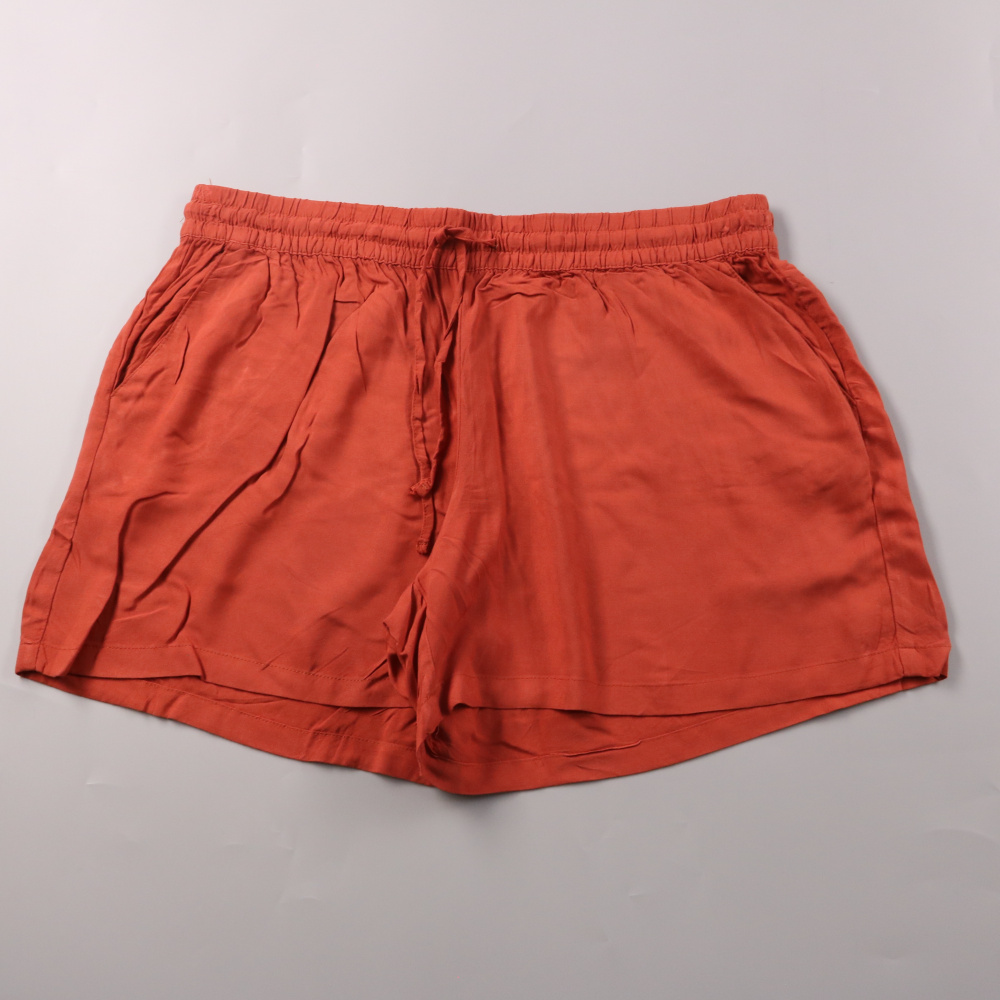 Лёгкие женские шорты Blue Motion терракотового цвета из 100% вискозы, с эластичным поясом и шнурком. Подойдут для лета, отпуска и прогулок, ткань мягко драпируется и не сковывает движения. Есть боковые карманы — удобно для телефона и мелочей.