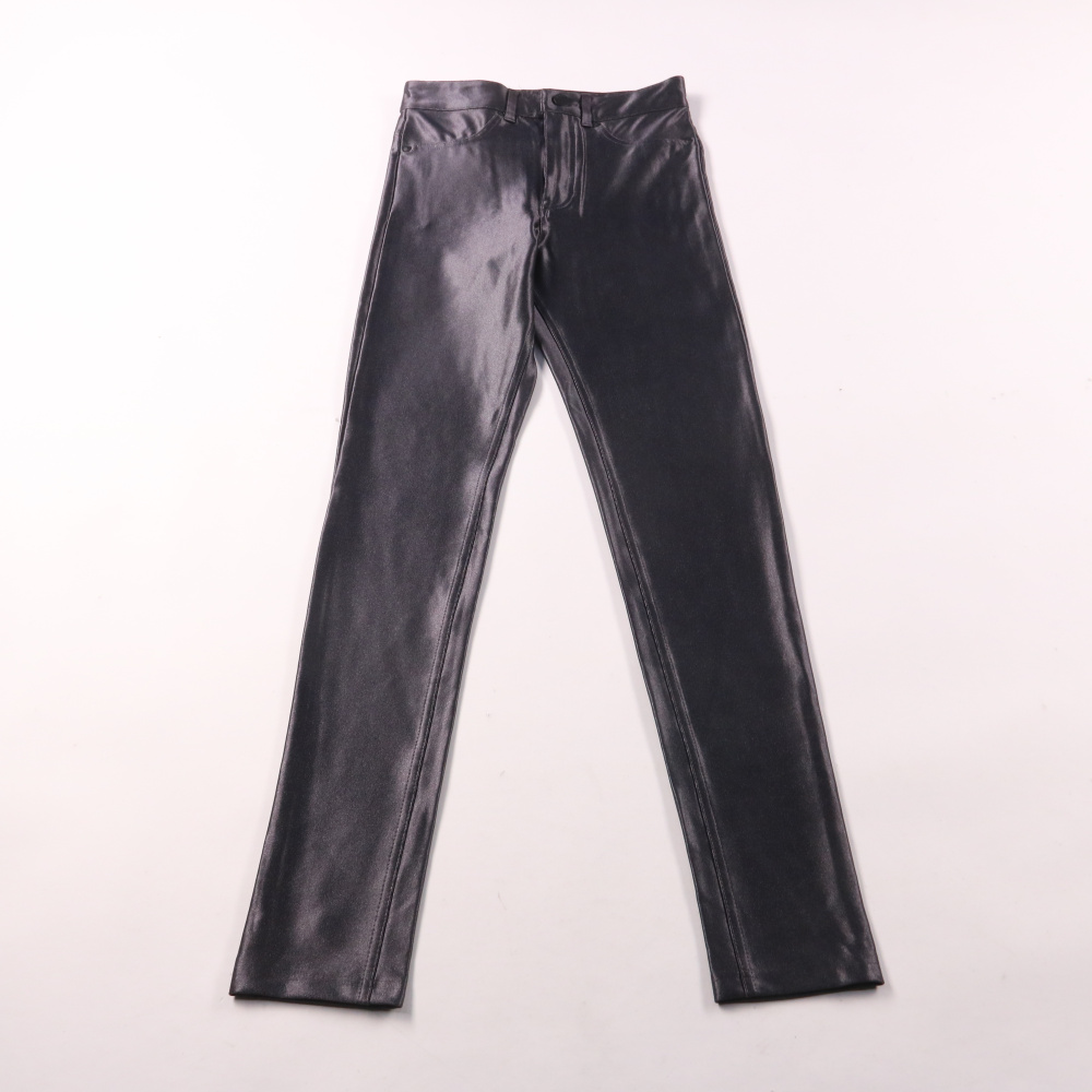 Женские брюки H&M из чёрного материала с эффектом кожи, облегающего зауженного кроя. Подойдут для повседневных и вечерних образов с рубашкой, джемпером или жакетом. Материал тянется за счёт эластана и комфортно садится по фигуре.