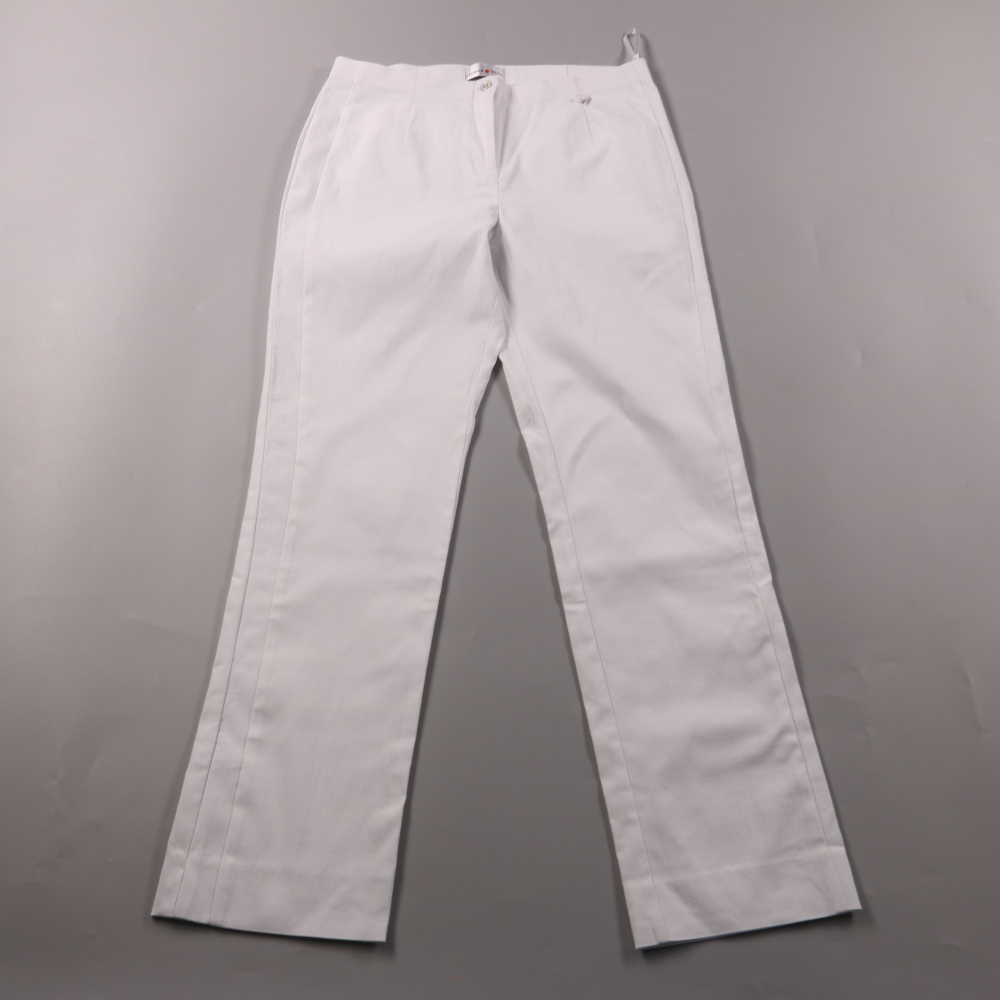 Женские белые брюки Helena Vera прямого кроя со стрелками и застёжкой на пуговицу. Подойдут для офиса и повседневных образов в тёплое время года, легко сочетаются с рубашками и жакетами. Ткань с добавлением эластана чуть тянется и комфортна в носке.