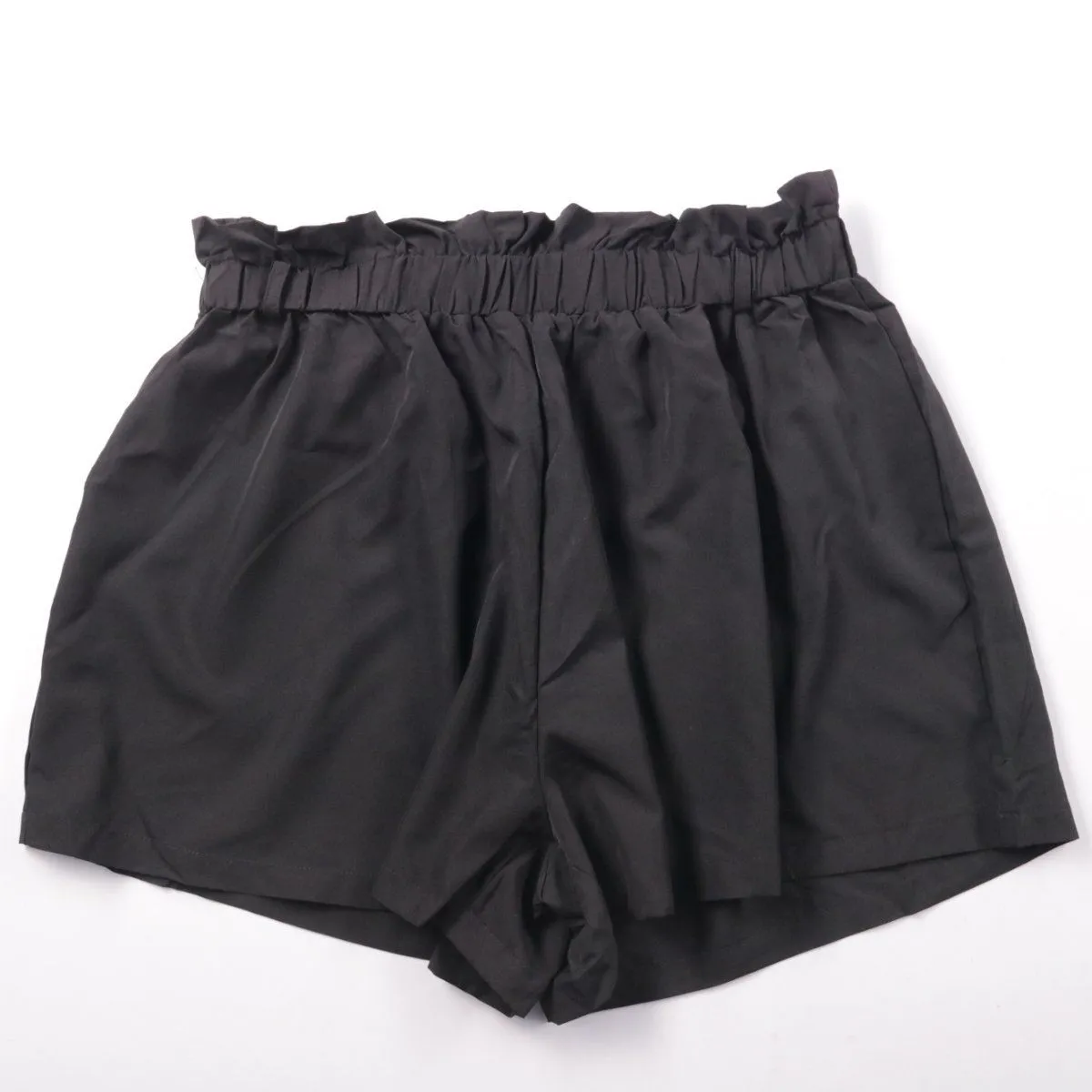 Женские шорты Shein Curve чёрного цвета с высокой посадкой и эластичным поясом с оборкой. Подойдут для лета и отпуска, а также для домашней носки и прогулок. Практичный плюс — лёгкая ткань и удобная посадка, не сковывающая движения.