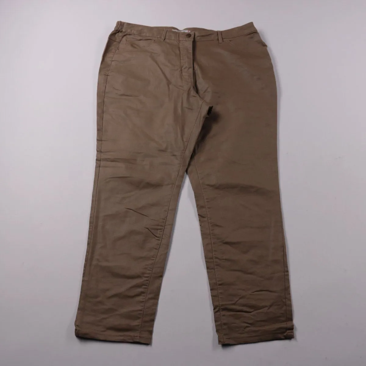 Женские брюки Blancheporte прямого кроя в бежево-коричневом оттенке, застёжка на молнию и пуговицу, есть шлёвки под ремень. Подойдут для офиса и повседневных образов в демисезон и прохладное лето. Практичный плюс — плотная хлопковая ткань со стрейчем хорошо держит форму.