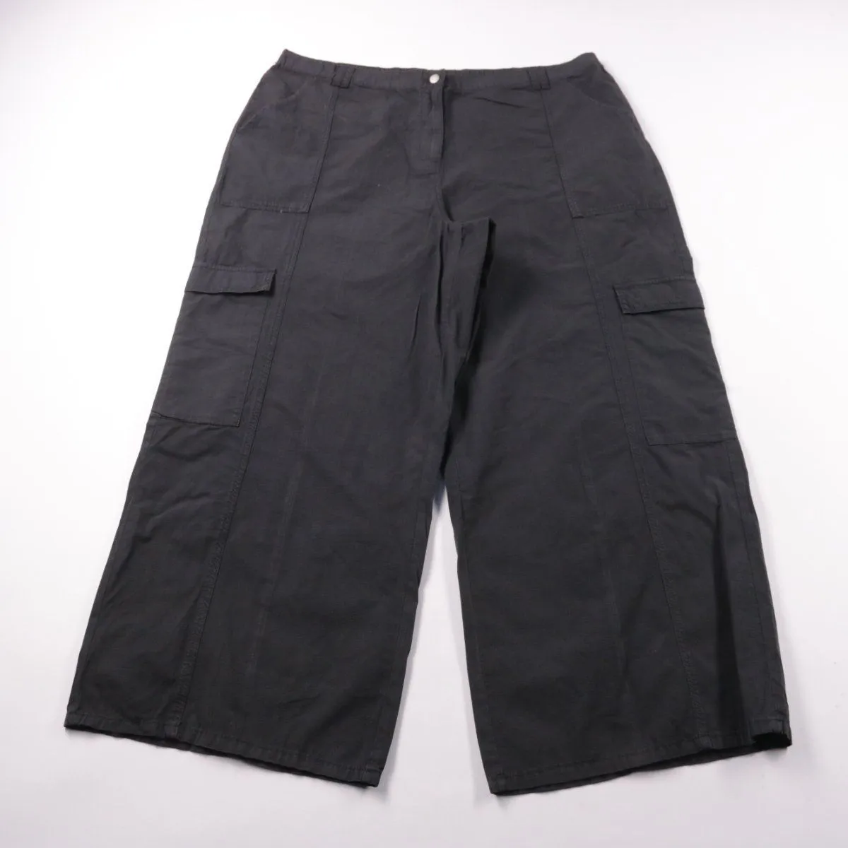 Женские брюки George в стиле карго, чёрного цвета, с накладными боковыми карманами и широкой укороченной штаниной. Подойдут для повседневных образов и прогулок в тёплую погоду. Натуральный хлопок хорошо дышит и комфортен в носке.