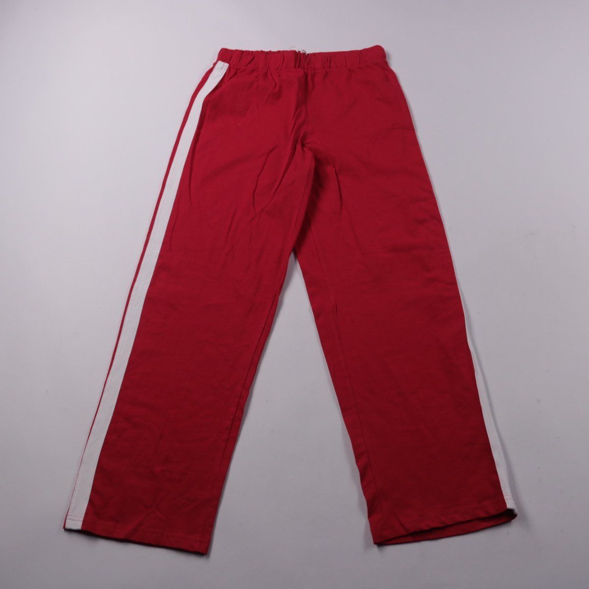 Женские брюки New Look красного цвета с белыми боковыми лампасами и эластичным поясом. Подойдут для повседневной носки и отдыха дома, легко сочетаются с футболками и худи. Практичное преимущество — 100% хлопок, ткань дышит и комфортна в носке.