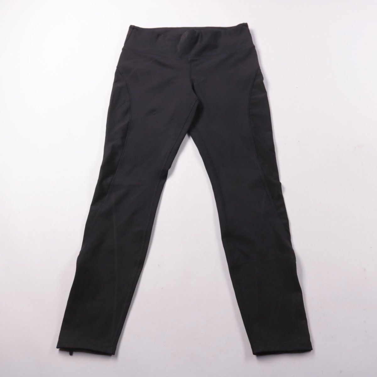 Женские чёрные легинсы с высокой посадкой и облегающим кроем. Подойдут для тренировок, бега и активных прогулок; по низу есть светоотражающие элементы. Эластичная ткань хорошо тянется и комфортно сидит по фигуре.