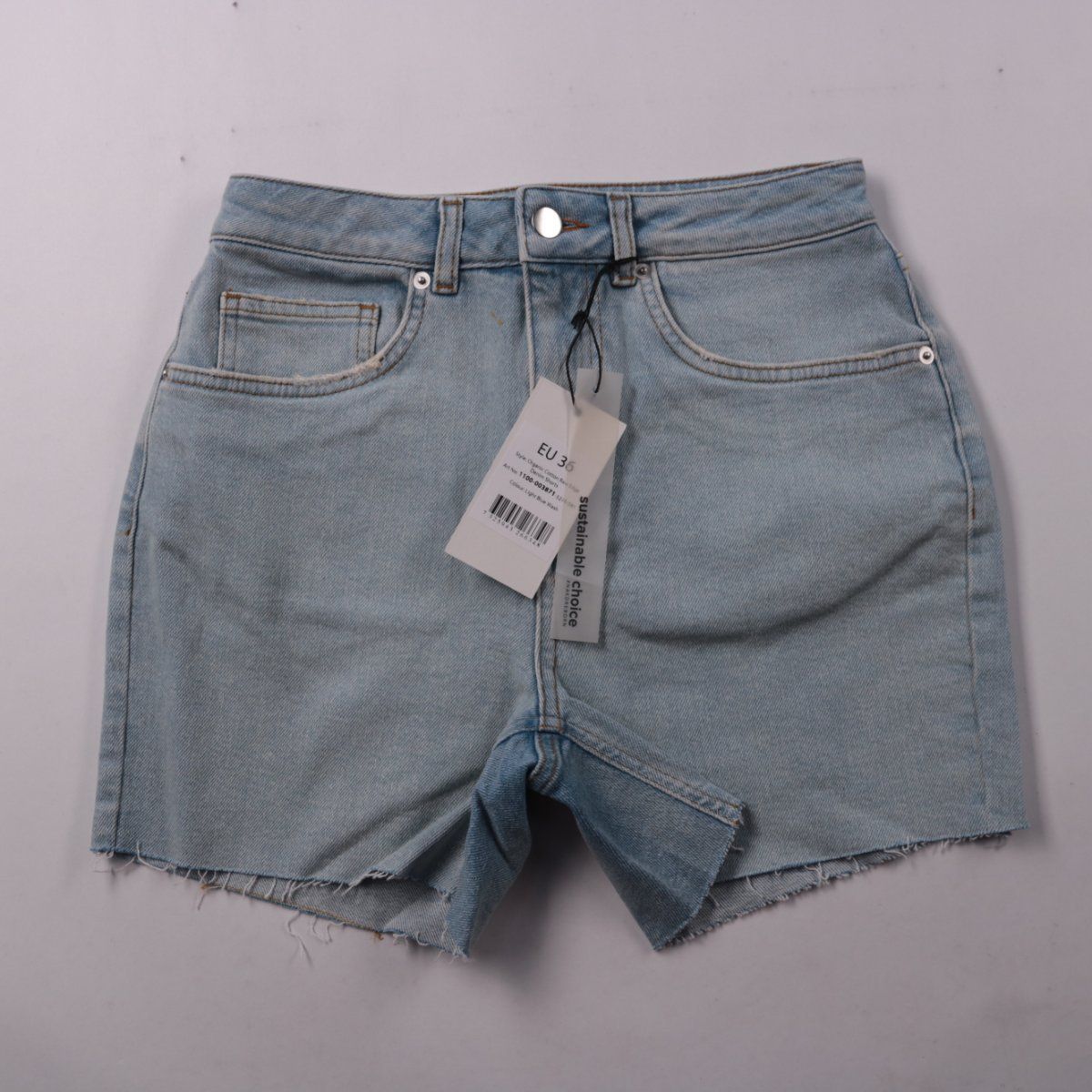 Женские джинсовые шорты NA-KD светло-голубого цвета, с карманами и необработанным краем по низу. Подойдут для летних повседневных образов и отдыха. Плотный деним хорошо держит форму и носится долго.