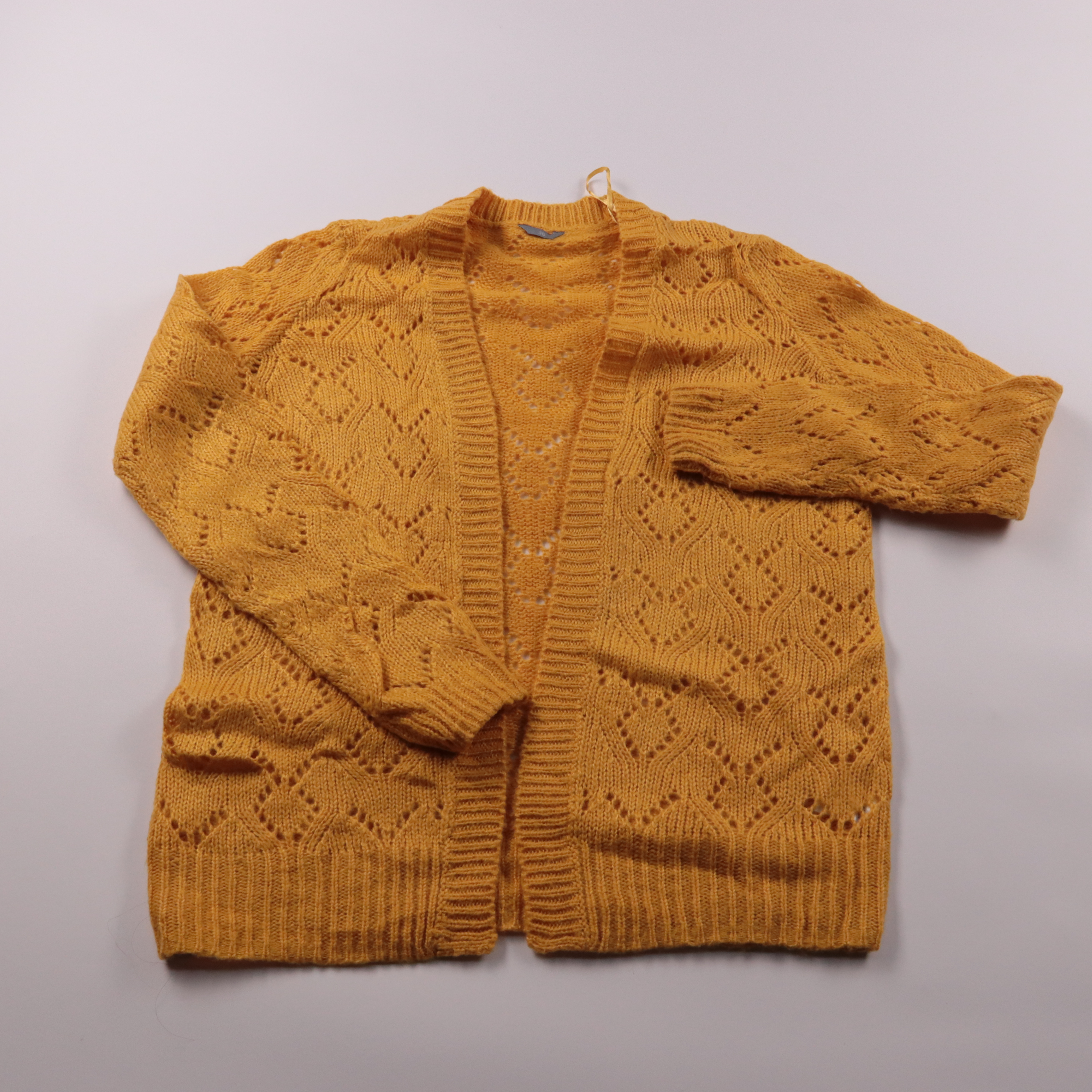 Вязаный кардиган ажурной вязки с V-образным вырезом и длинными рукавами. Подойдёт для прохладной погоды и многослойных образов с топом или водолазкой. Лёгкий акриловый материал прост в уходе и быстро сохнет.