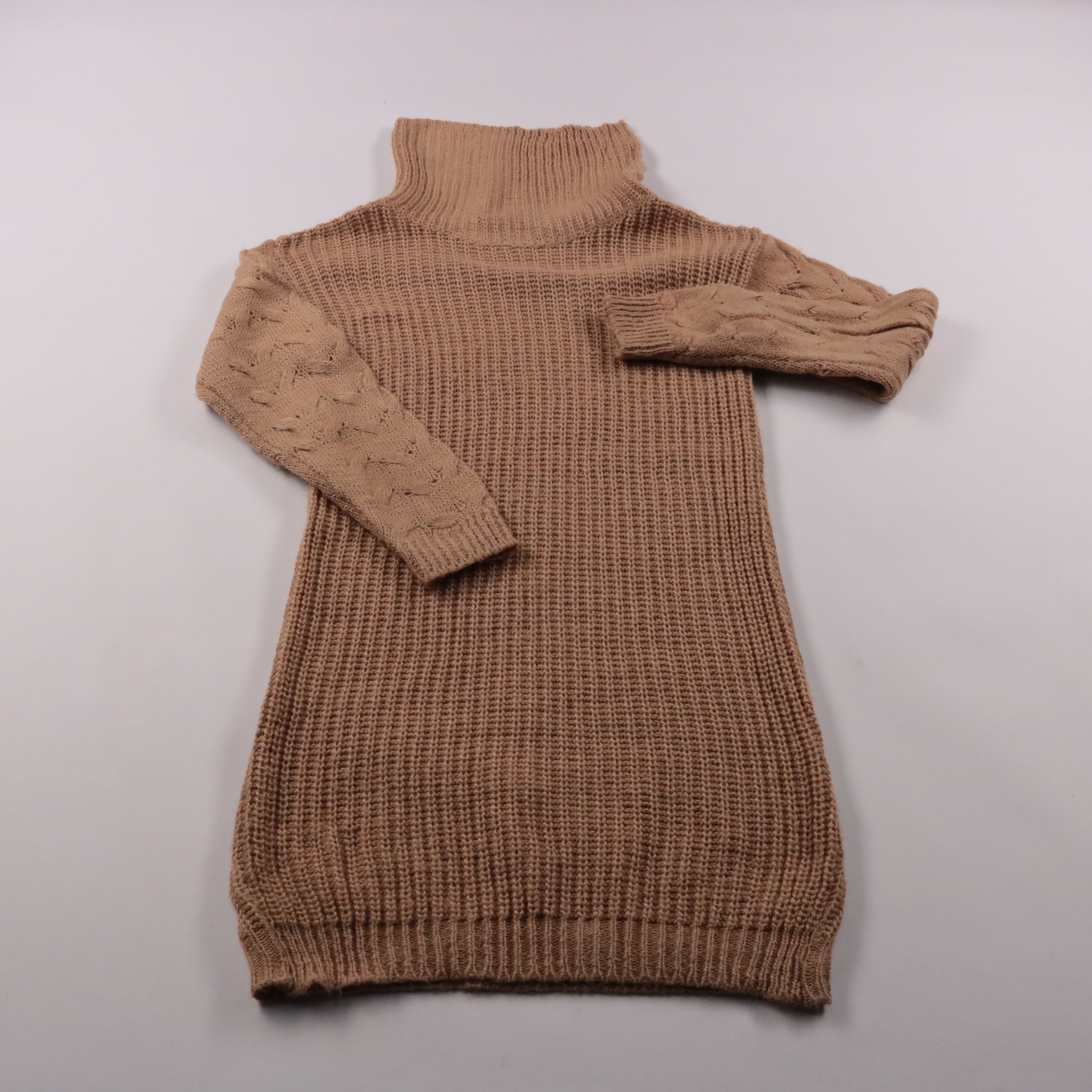 Вязаный свитер Luluna London с высоким воротником и фактурной вязкой, рукава с узором «косы». Хорошо подойдёт для прохладной погоды и многослойных образов с джинсами или юбкой. Плотная вязка держит форму и комфортно сохраняет тепло.