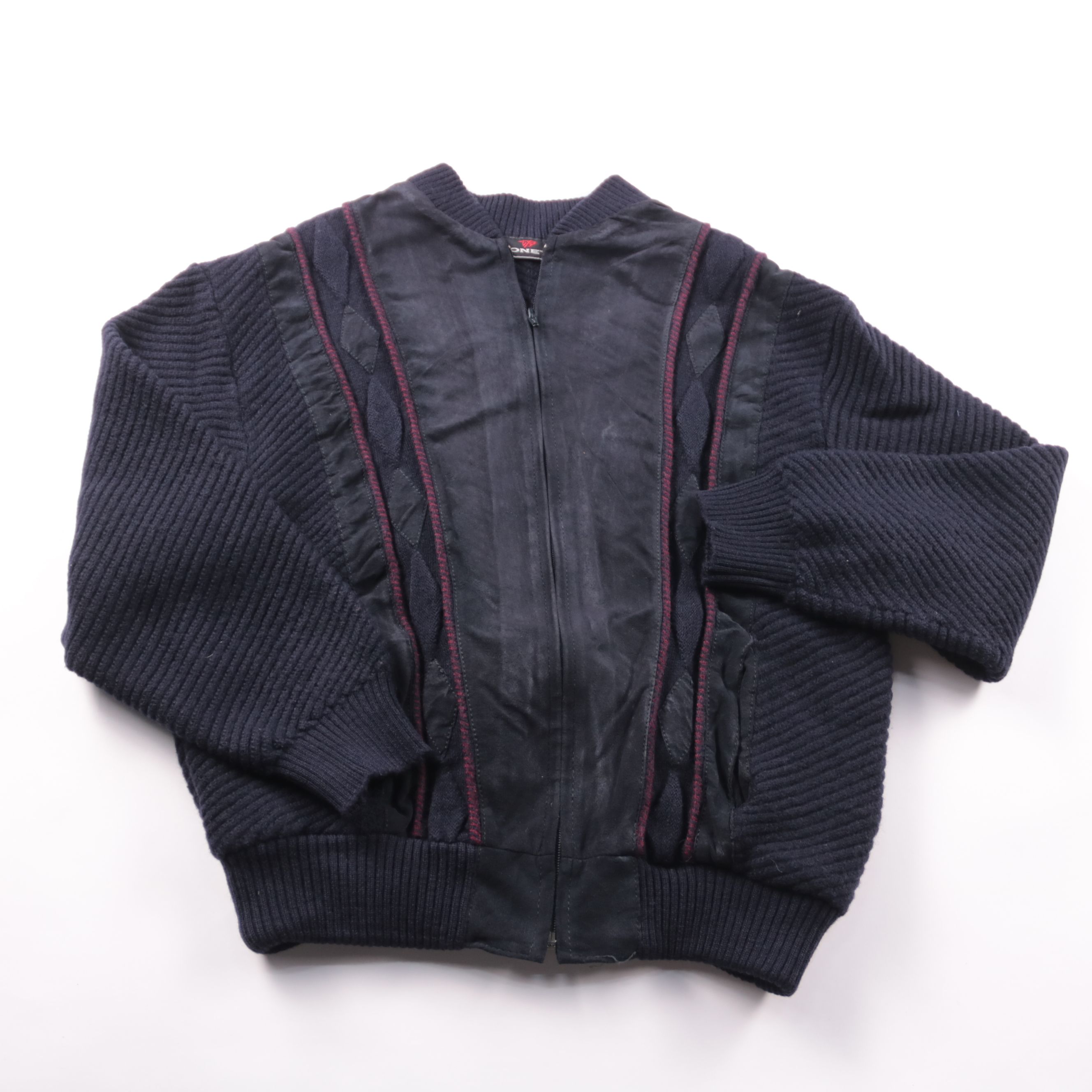 Мужская кофта Bonetti на молнии с фактурной вязкой и контрастной отделкой, цвет тёмно-синий. Подойдёт для повседневной носки в прохладную погоду и как второй слой под куртку. Практичный плюс — шерстяной трикотаж сохраняет тепло, а подкладка из полиэсте...